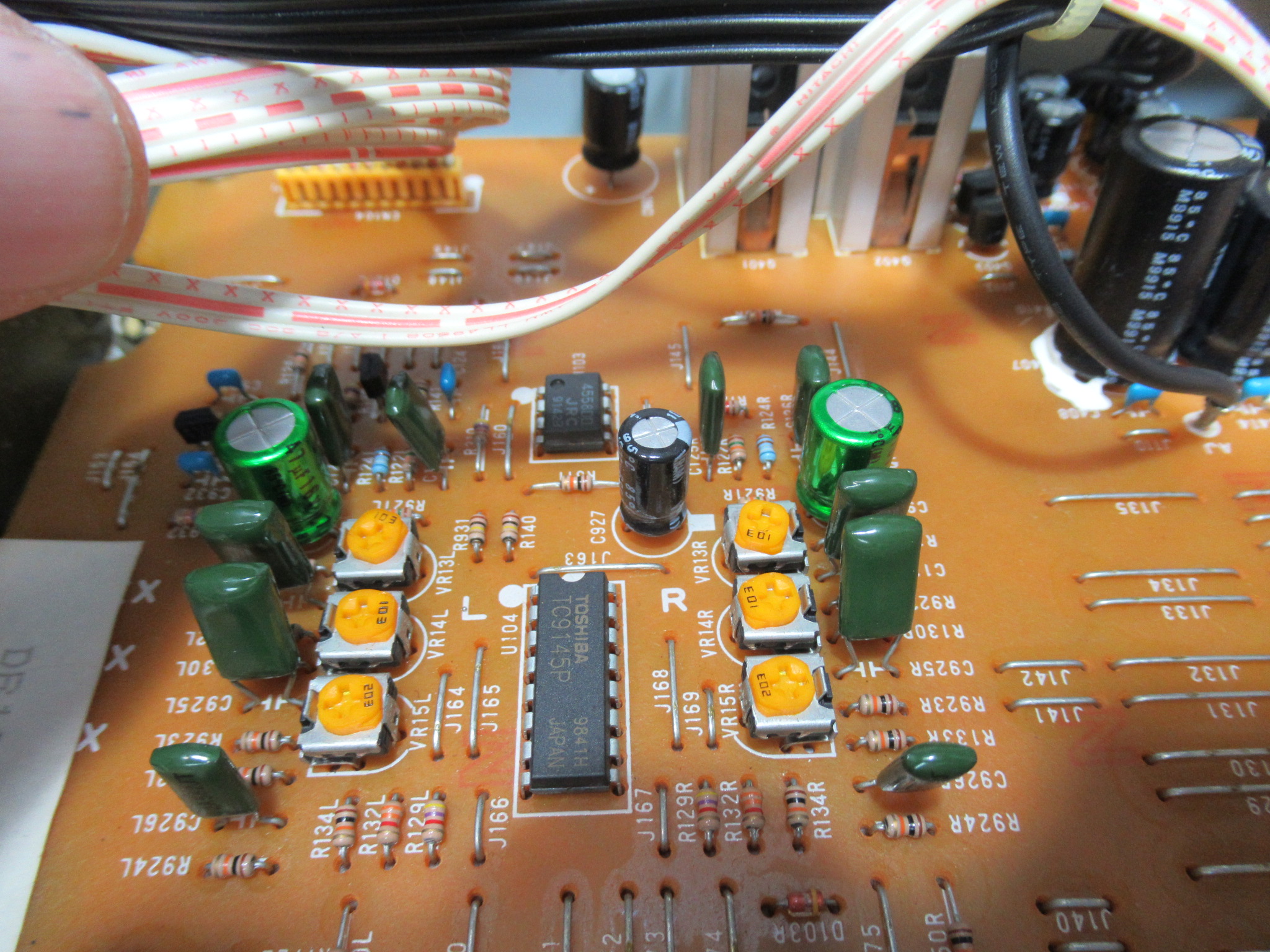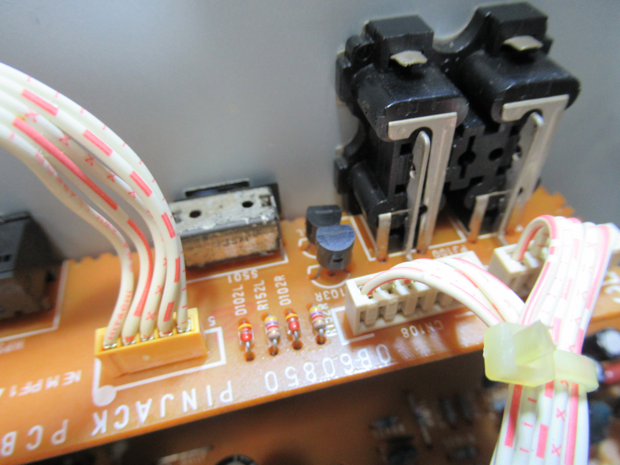 怪しいのは、ミュート回路のトランジスタ(写真中央)です。