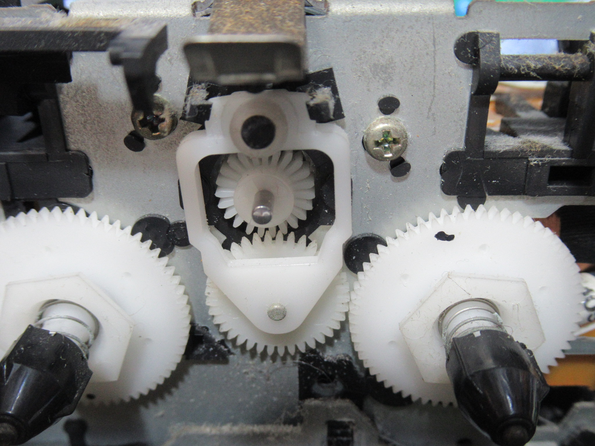写真中央のピニオンギヤが奥に移動しています。そのため、ギヤが噛み合うことができません。