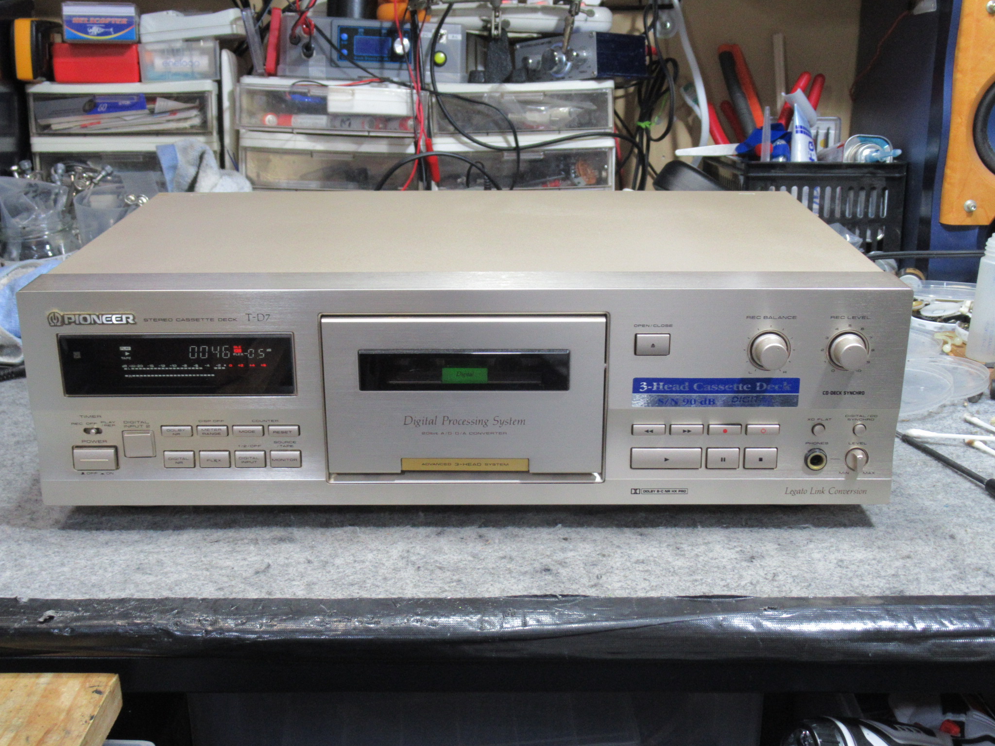 パイオニア製3ヘッドシングルキャプスタンカセットデッキ、T-D7の修理依頼をいただきました。