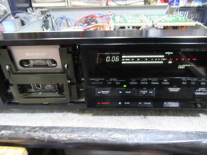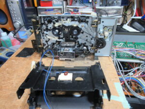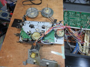 こちらもアイドラーゴムがスリップしてテープ走行が困難な状態です。なお、1台目との再生等レベルの差異があるということでしたので、それも併せて点検調整します。