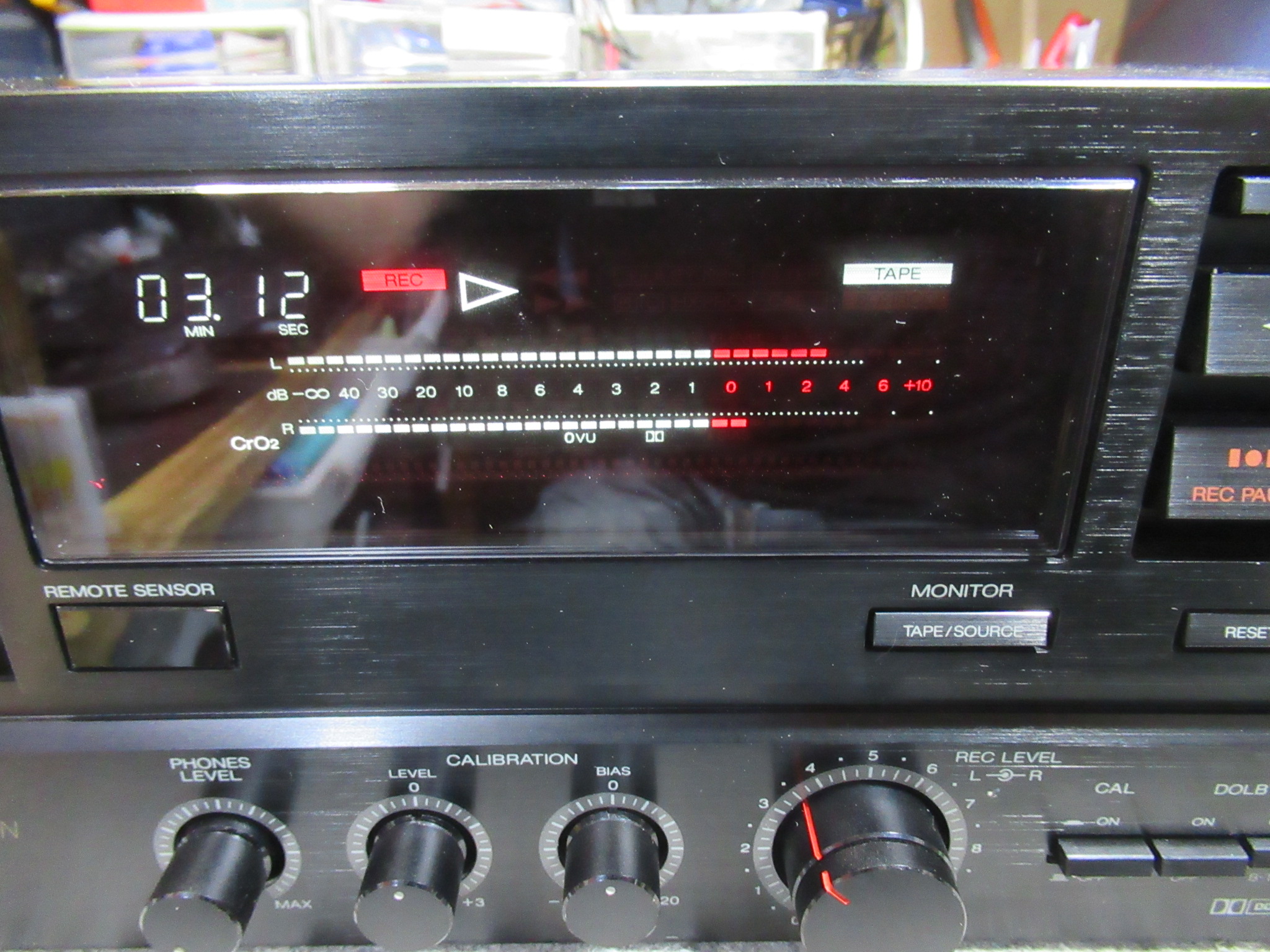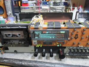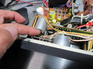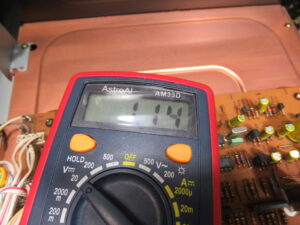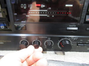さらには、レベル調整後に「SORCE」から「TAPE」に切り替えると左CHが2目盛りほど大きく振れてしまいます。これも回路の問題と思われますが、いずれも修理は困難なため、録音の際には左右バランスは固定状態とするようオーナー様にご連絡し、