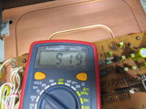 電源を入れて、左側の半固定抵抗を回し、9.19Vになるよう調整します。