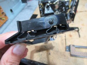 両サイドに装備されている樹脂製スプリングが変形していますので、脱着して加熱整形します。