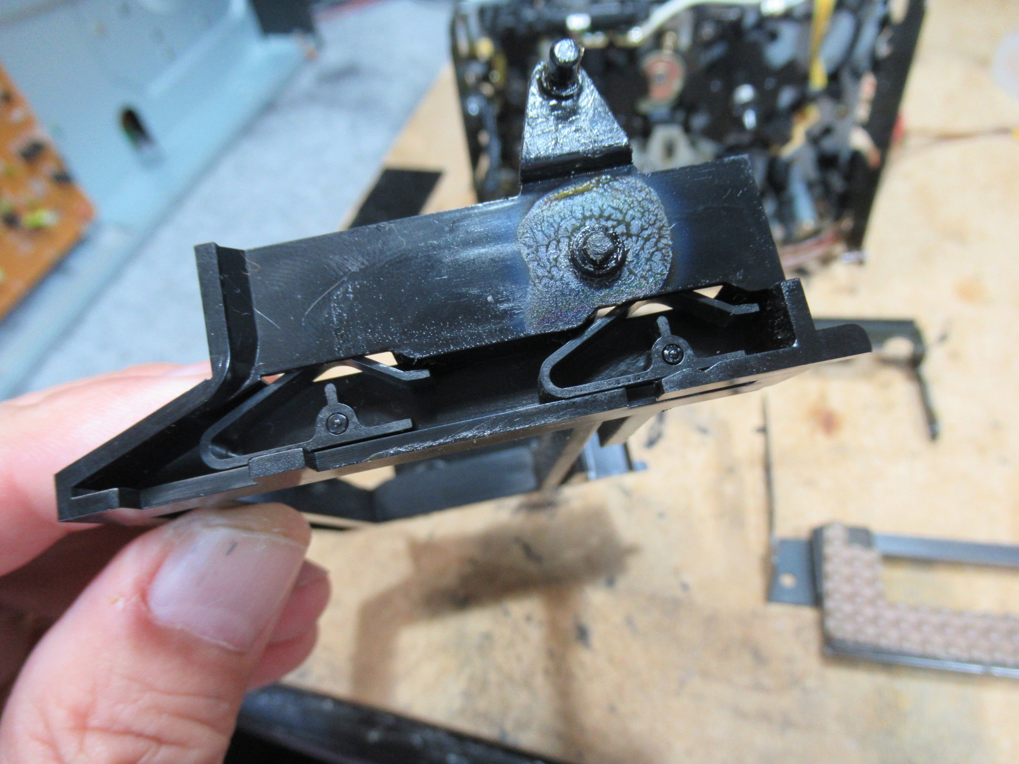 ヘッド周りの可動パーツに塗られたグリスが固まりかけていますので、