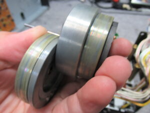 フライホイールに付着したゴムカスを除去清掃します。
