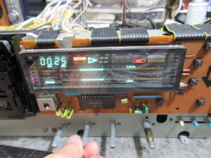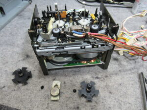 外観は一緒ですが、まったく異なるパーツが取り付けられていました。これは、おそらくGX-Z7000などのバランスVOLと思われますが、そもそもの抵抗値も違えば、回したときの左右の抵抗値の変化量も異なります。以前修理された方がそれを知らずに交換されたようですが、録音ができなかったためにミスに気がつかなかったようです。