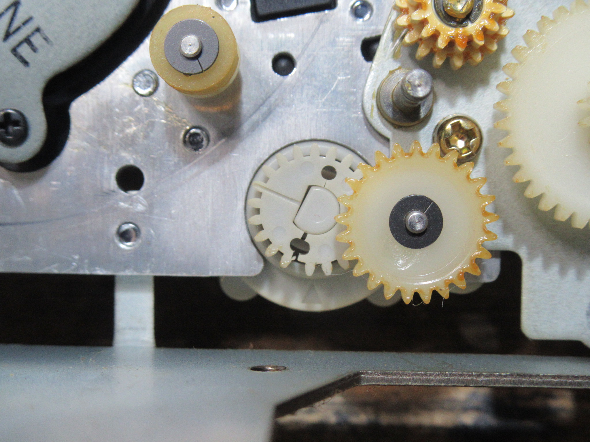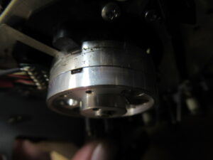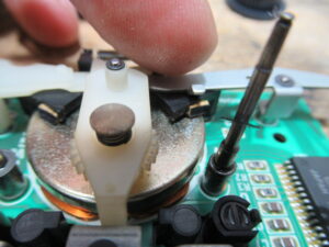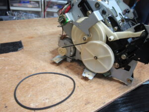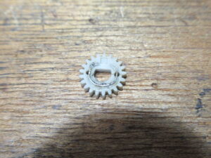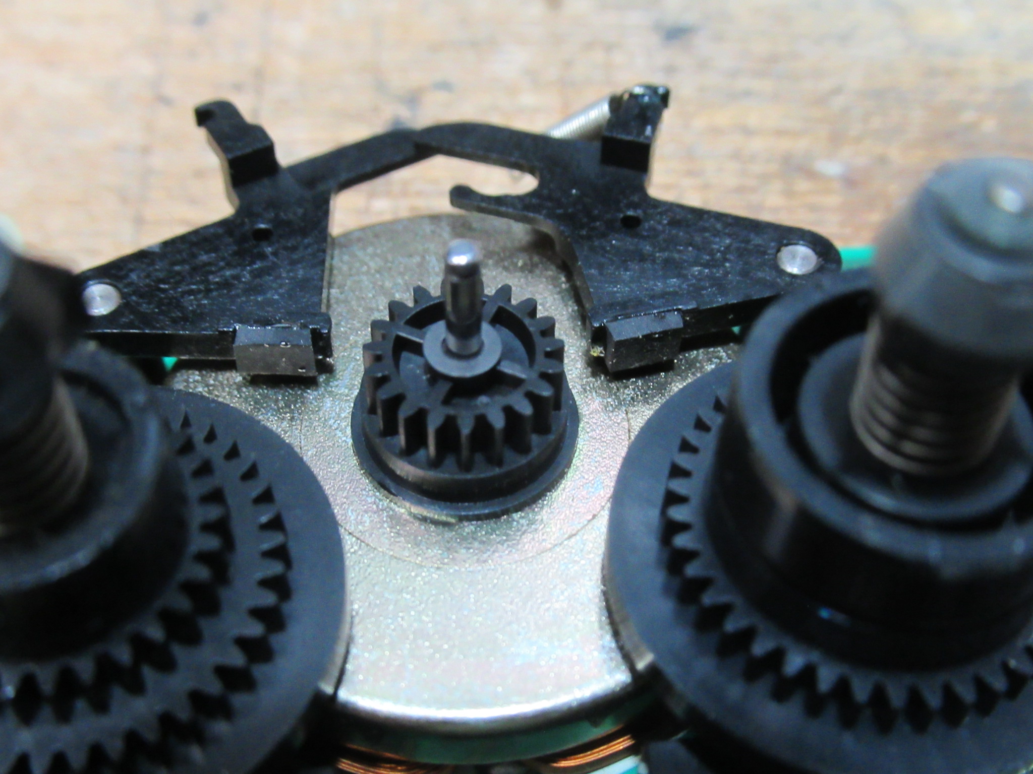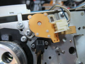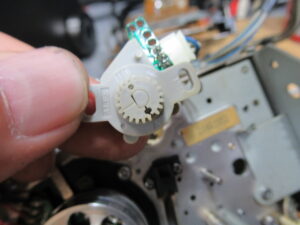 これはメカの動作状態を検知するロータリーエンコーダーですが、ギヤが割れていますので後ほど処置します。