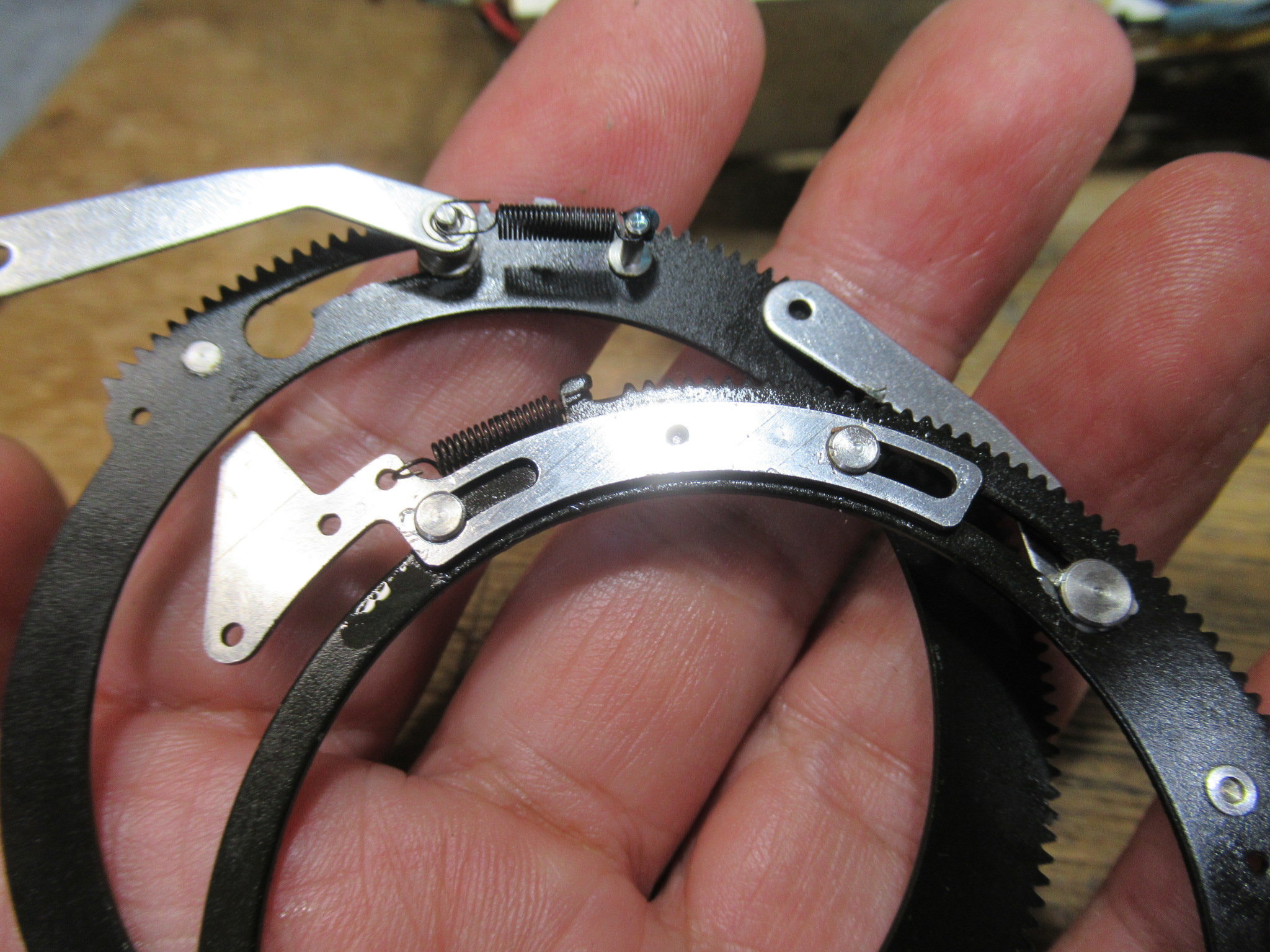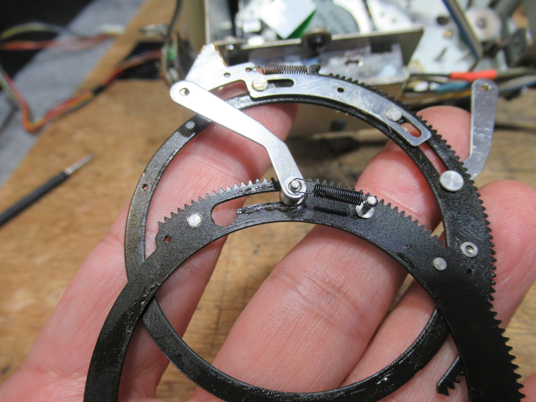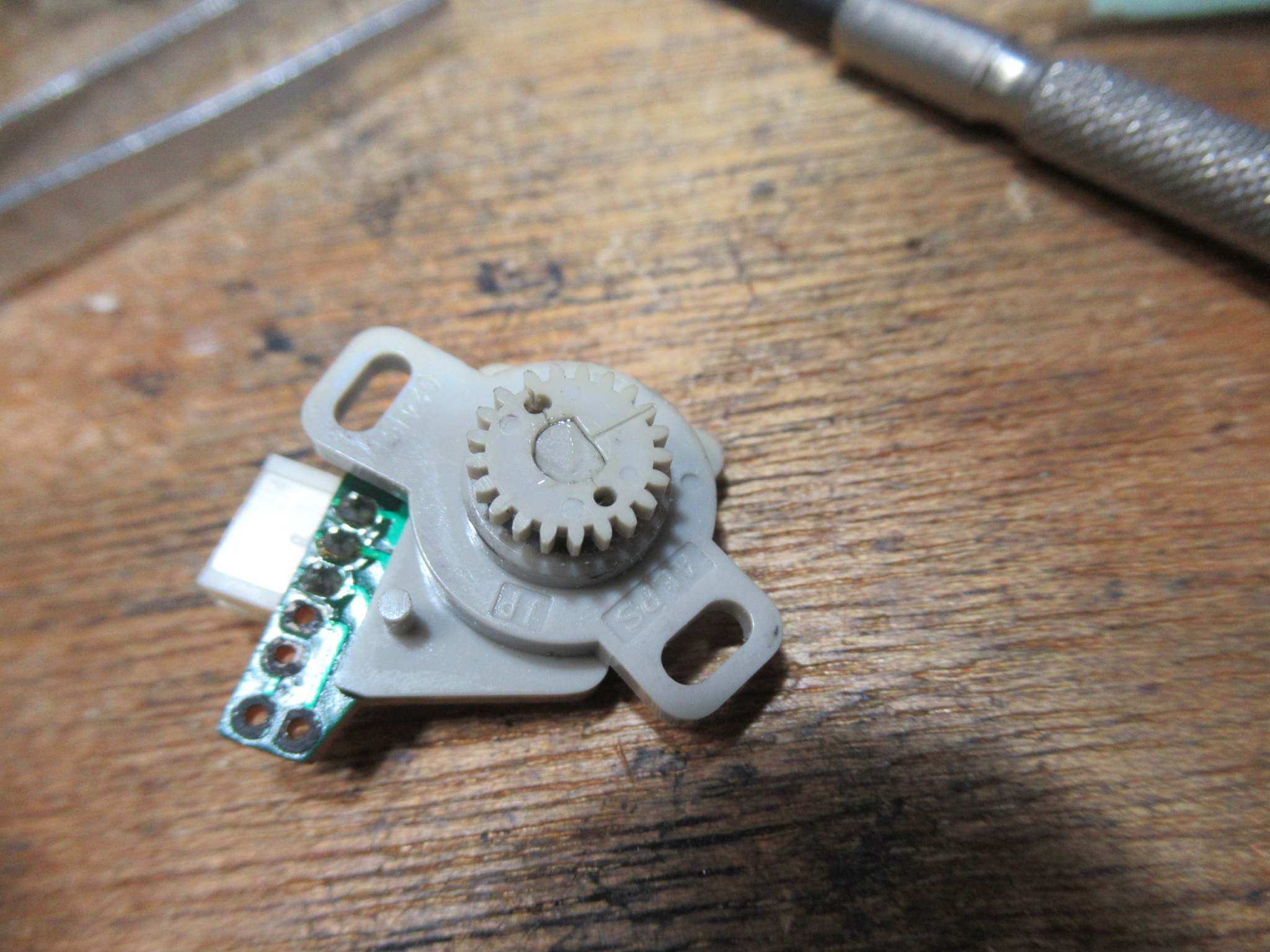 これはメカの動作状態を検知するロータリーエンコーダーですが、ギヤが割れていますので後ほど処置します。