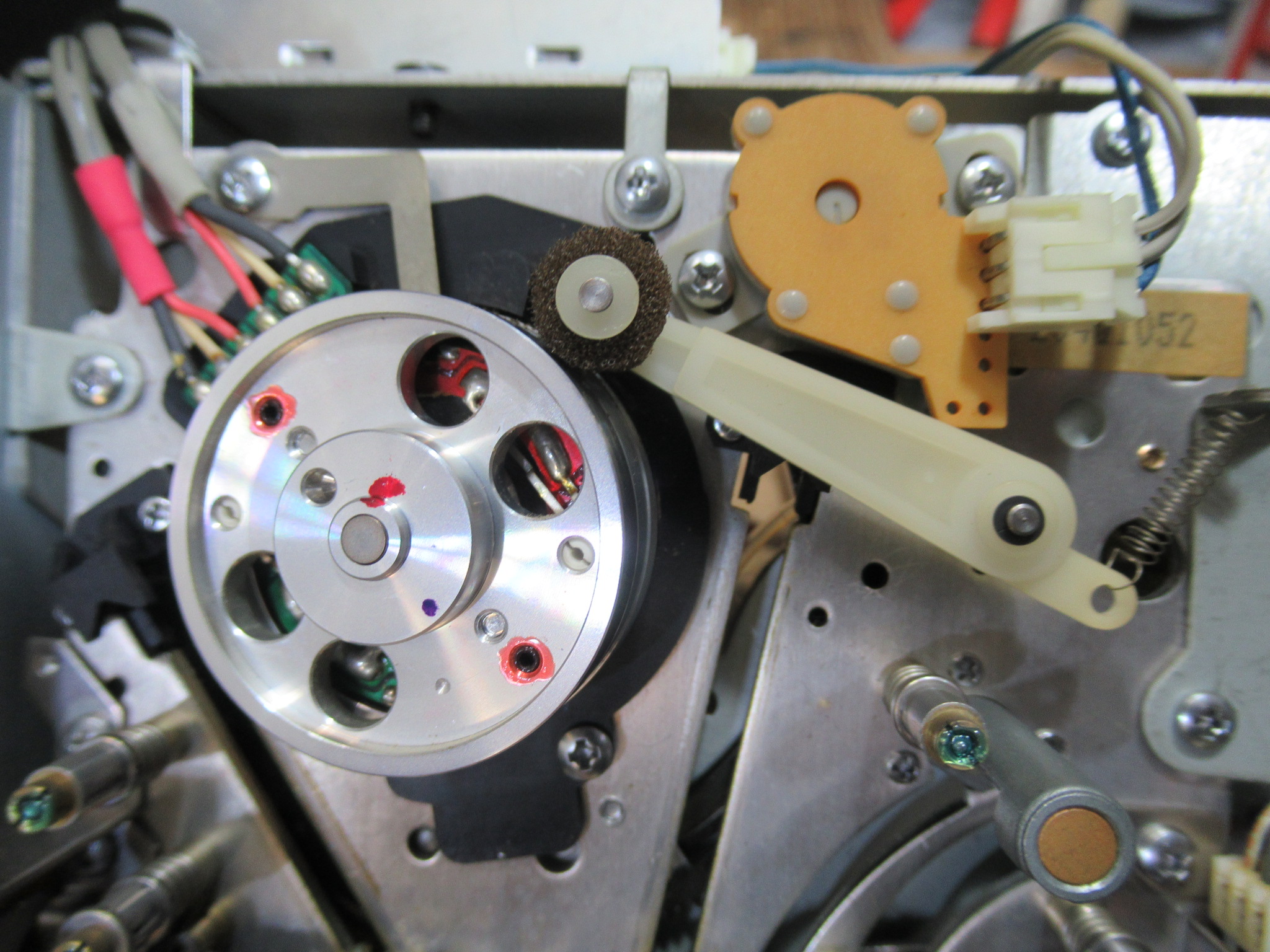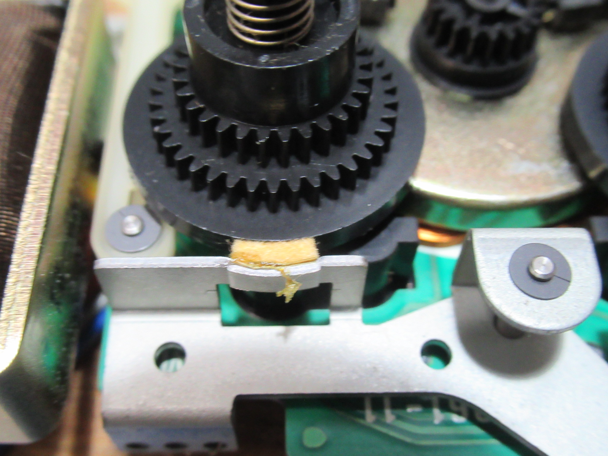 標準装備のスポンジ製ヘッドクリーナーはヘッドチップを痛めますので撤去します。すでに変質してボロボロでした。