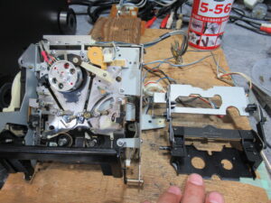 SONY製DATデッキ、DTC-55ESです。 オークションで入手したという機器ですが、テープ走行に難があるということです。この機種の整備は簡単ではありません。 カバーを開けてメカを取り出します。 メ …