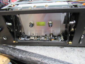 カバーを開けてメカを覗き込みます。アイドラーがスリップしていることが確認できましたが、メカを降ろすのは見るからに厄介です。