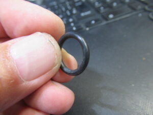 使用されていたのはOリングです。接地面積の関係から、一般的には丸ゴムはアイドラーには使用されませんが、おそらく、元々が特殊な形状のゴムリングだったため、やむを得ずの処置だったと推測されます。