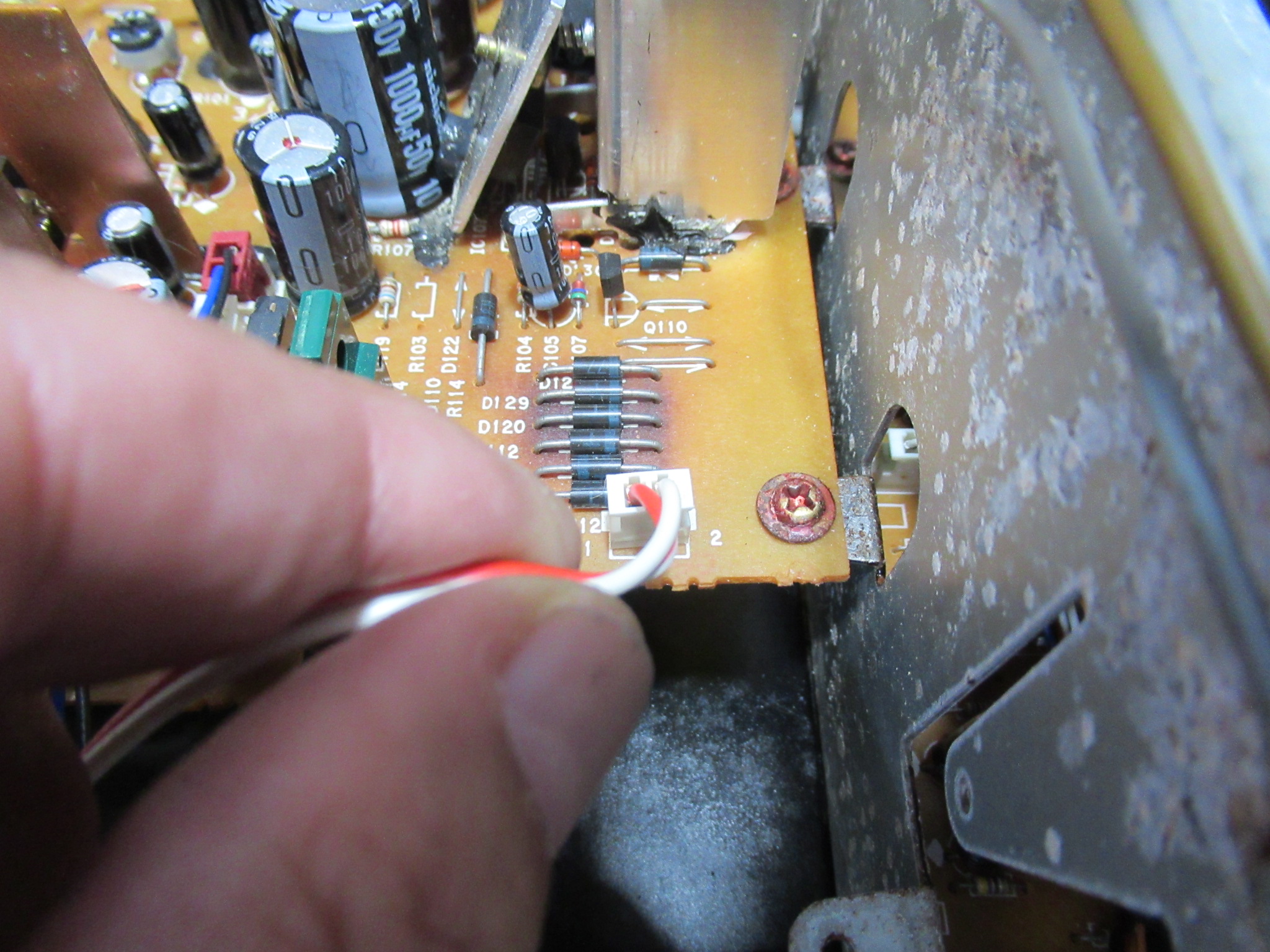 ありました。半田クラックが数か所見られますので、再半田しました。当店での動作テストでテープ走行しなかったのは、数か所ある半田割れの微妙な接触不良によるものと思われます。