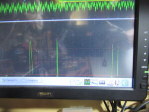 グラフはビフォーアフターです。縦線4本は異なる周波数を表します。右2本は10000Hzと12500Hzですが、クリーニング後(右写真)は高域が伸びています。考えられるのは、左側キャプスタンに付着した汚れで走行が不安定になり、ヘッドタッチが悪くなって音が籠ったということです。