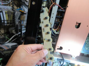 まずは操作ボタンの誤作動の修理を行います。スイッチ基板を取り外します。