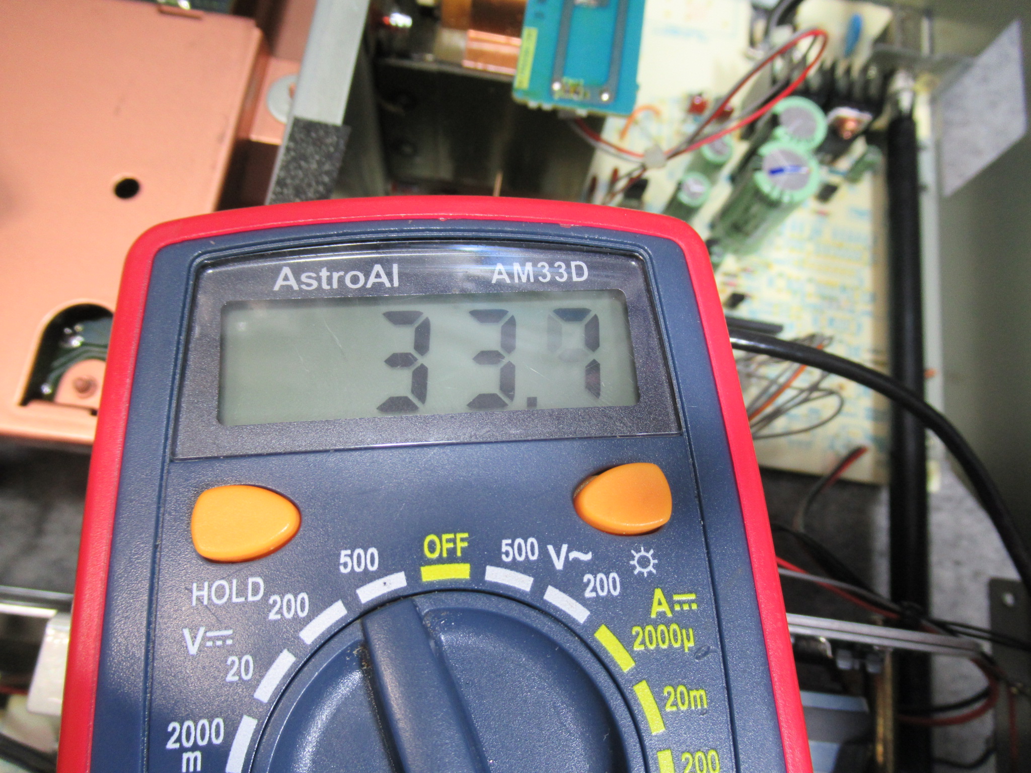 スイッチを取り外してON時の抵抗値を測定します。本来0(ゼロ)であるべきところ、接触不良により33Ω程の抵抗値です。そのため、マイコンが誤認識してしまったようです。