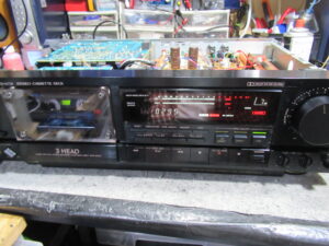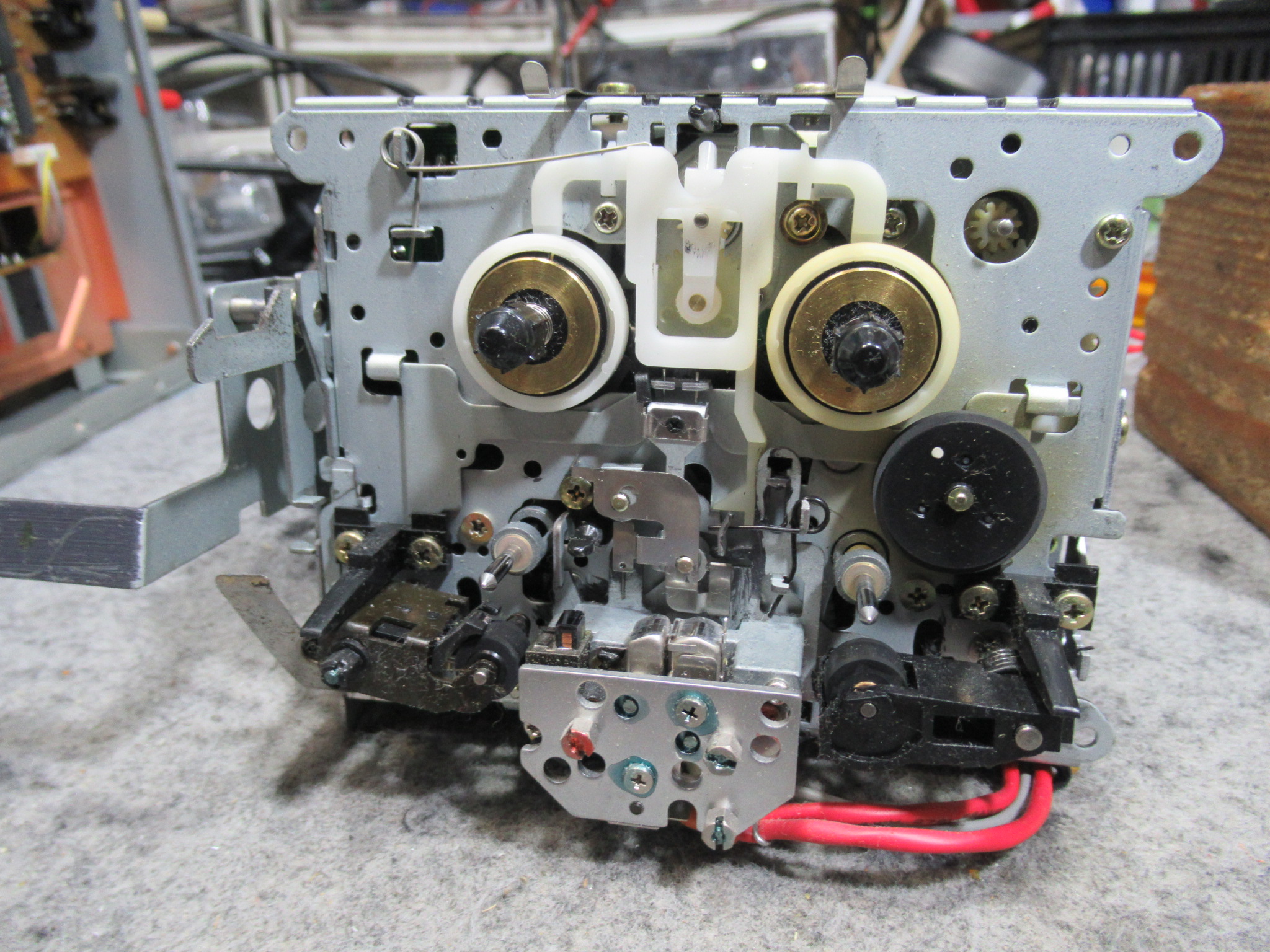 不具合は大きく3点です。①再生するとテープが引き出されてしまう。②早送りボタン押したのに巻き戻しになったり、その逆もあり。その際カラカラと音がする。③高音が伸びず、全体にこもった音