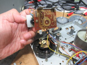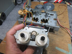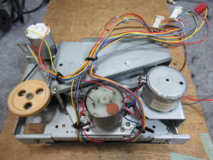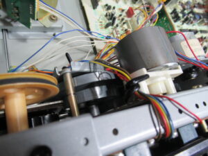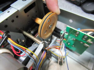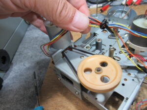 無くなっていたキャプスタンベルトは、加水分解で柔らかくなって切れて、モータープーリーに巻き付いていました。