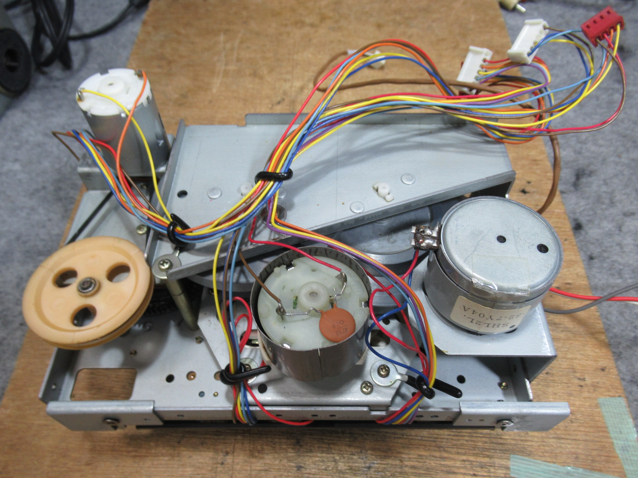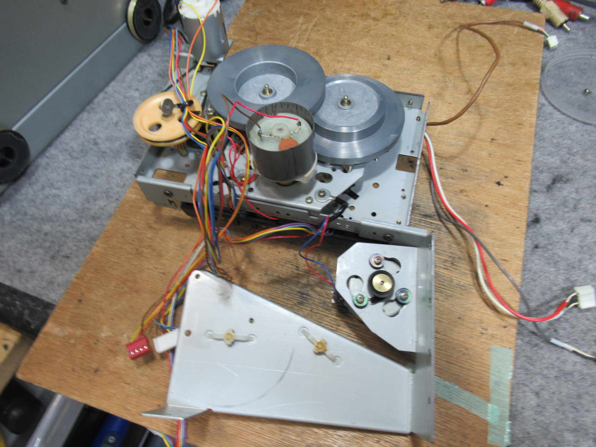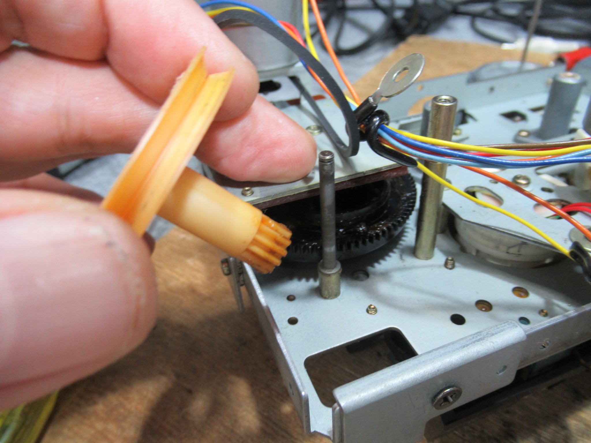 無くなっていたキャプスタンベルトは、加水分解で柔らかくなって切れて、モータープーリーに巻き付いていました。