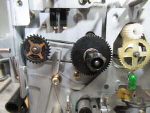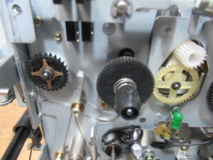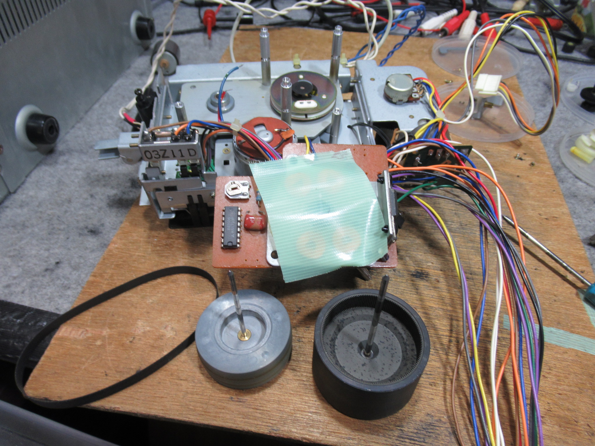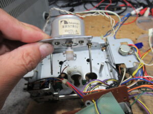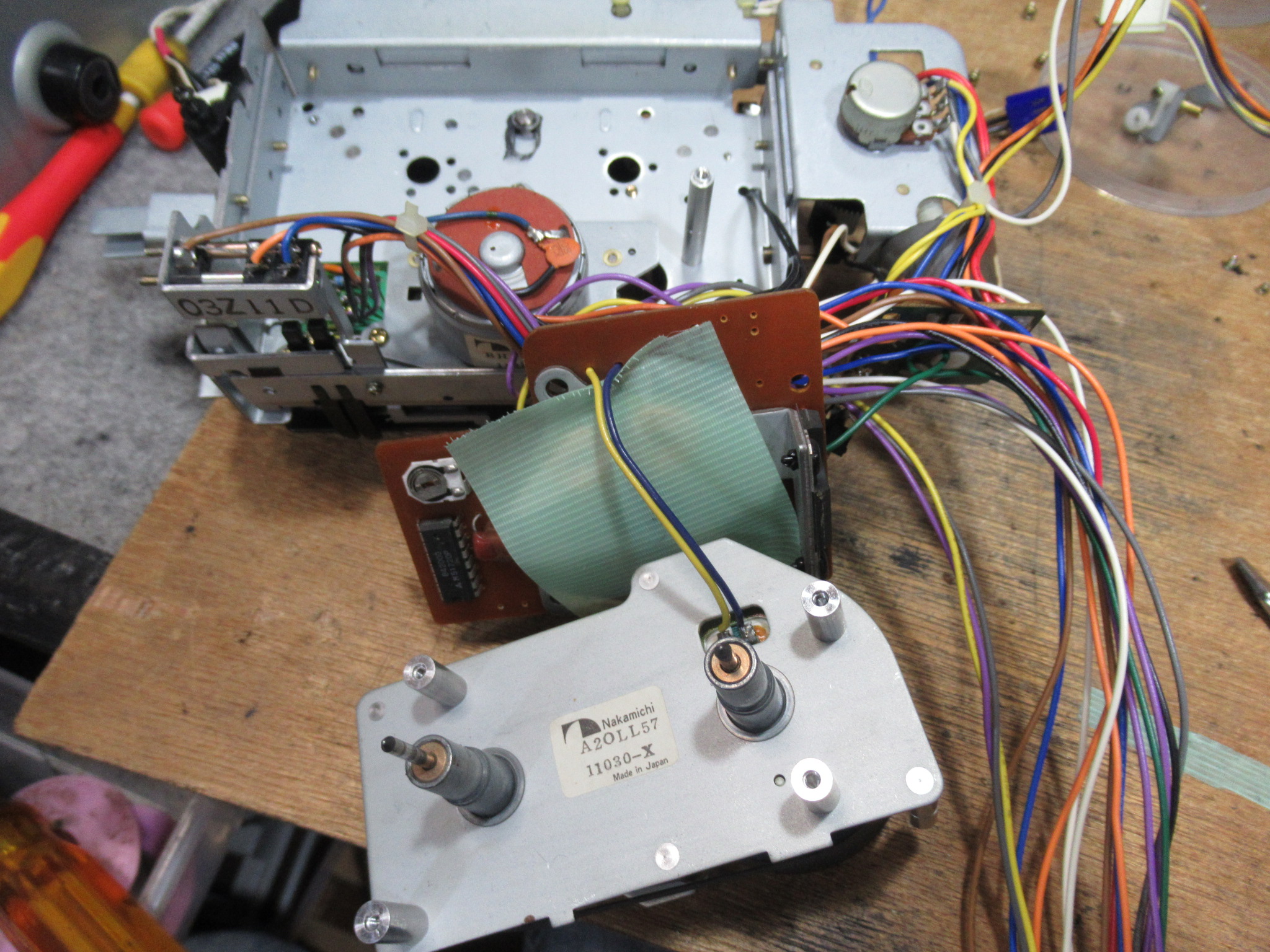メカを取り出しました。向かって右側のユニットは、再生ヘッドのアジマスを電動で調整するためのものです。