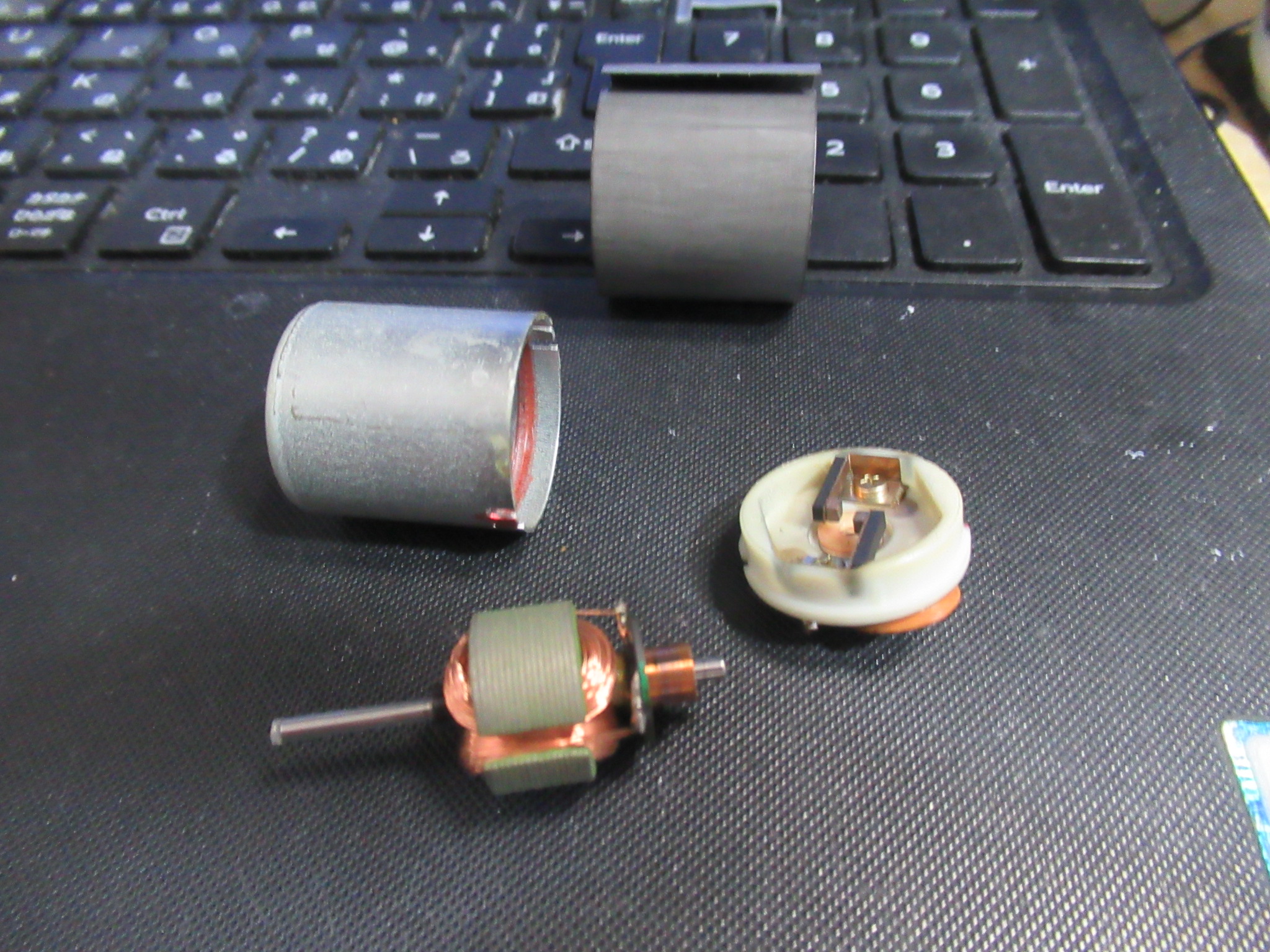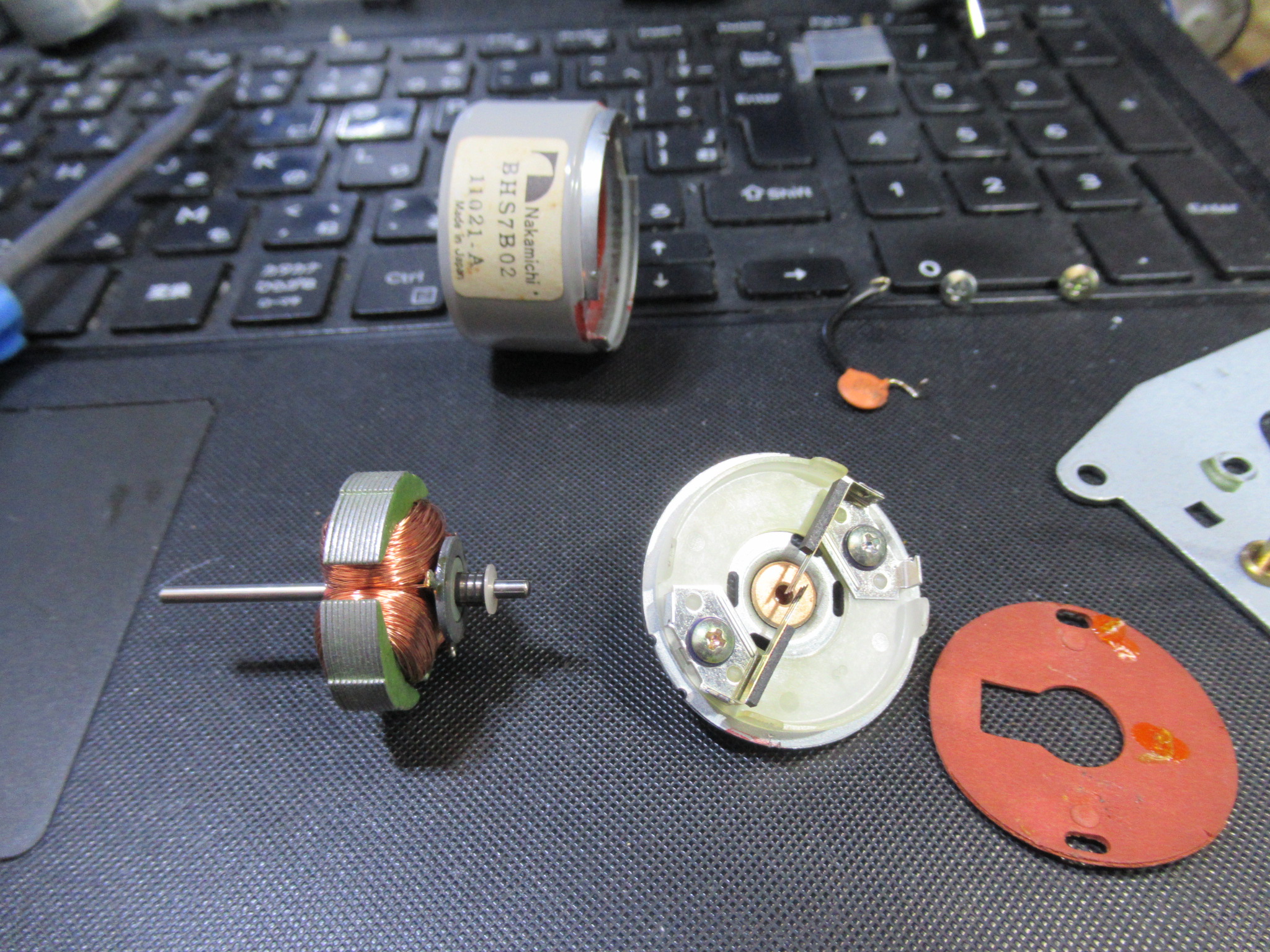 モーターを分解してブラシと整流子を磨き、元通り組み付けて慣らし運転を行います。