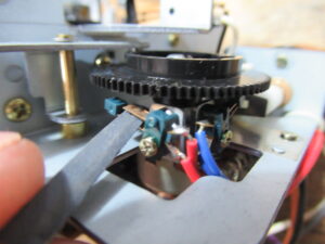 アジマス調整ユニットのリミットスイッチ接点を磨きます。