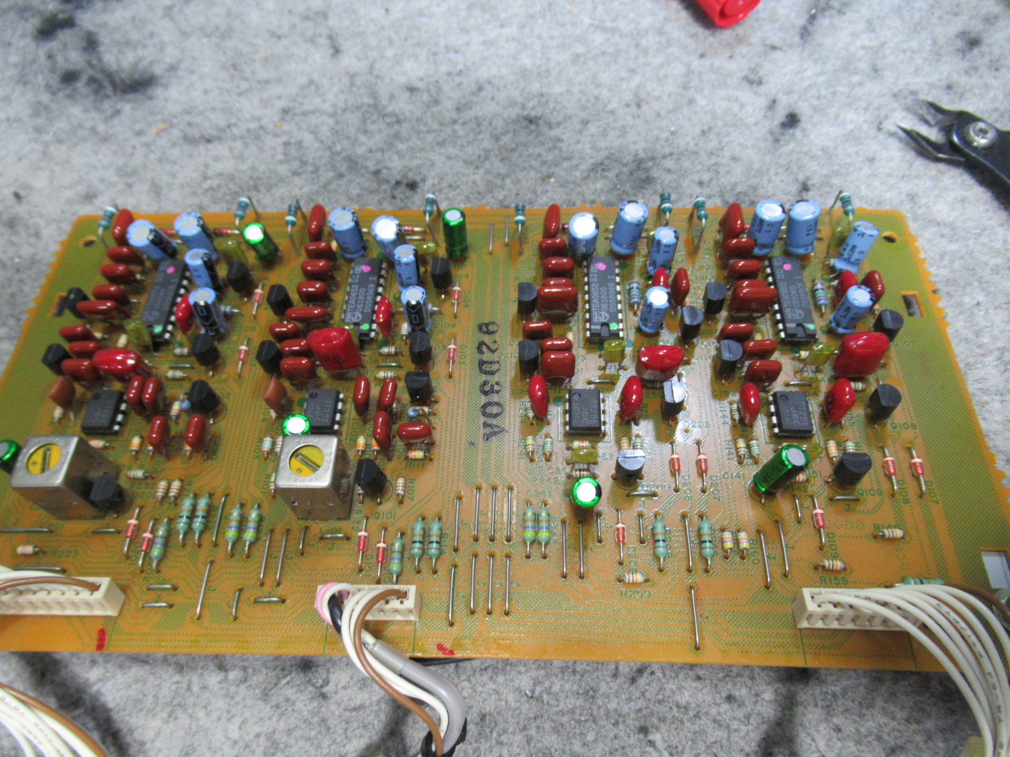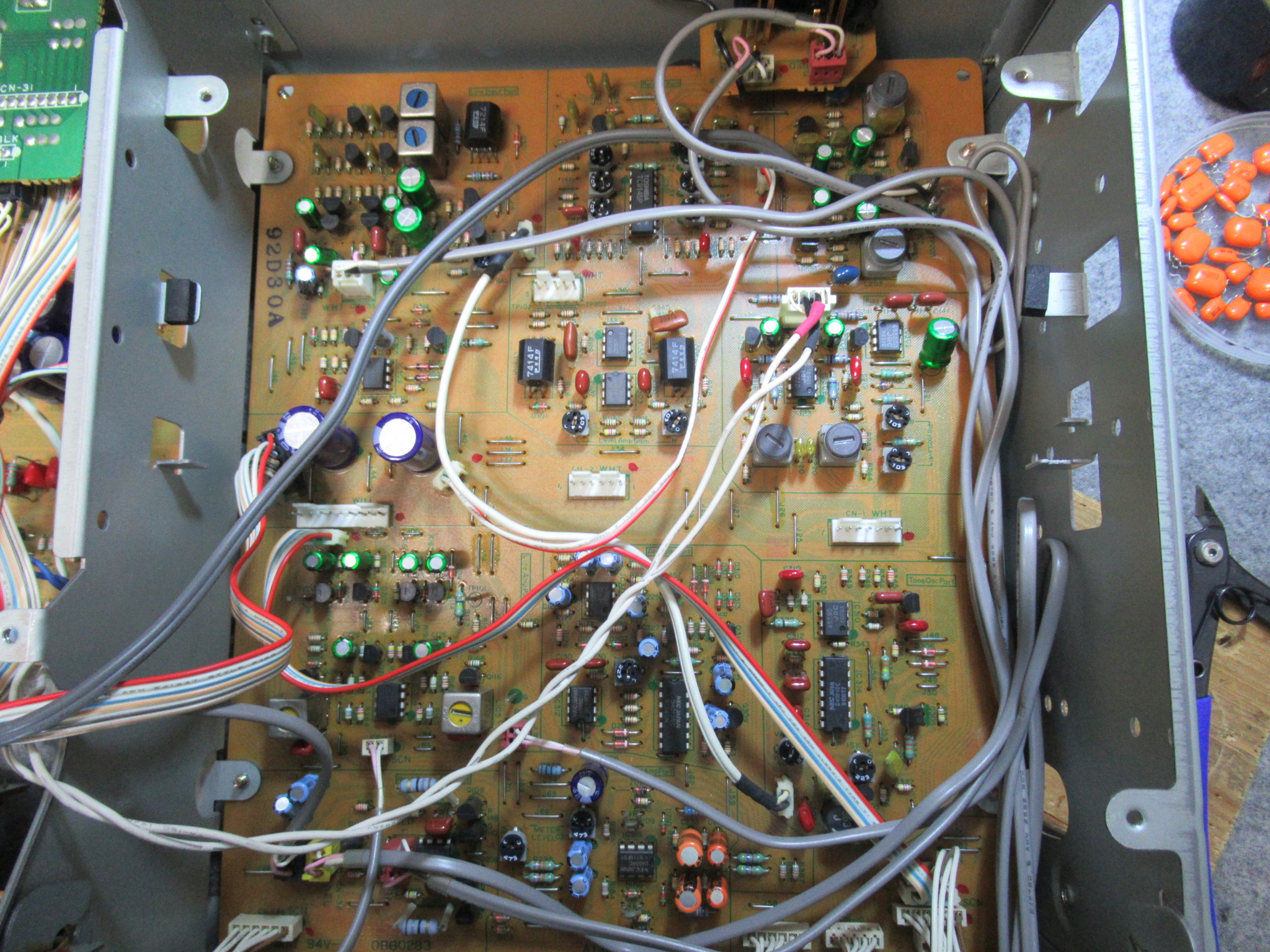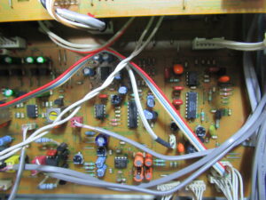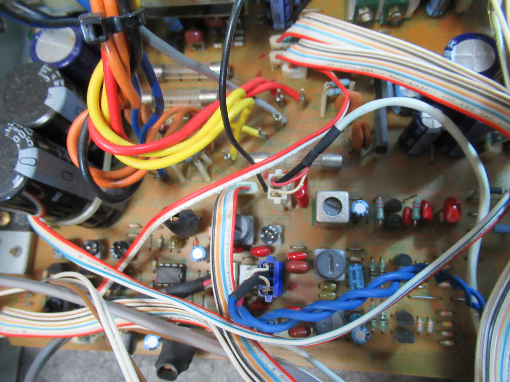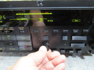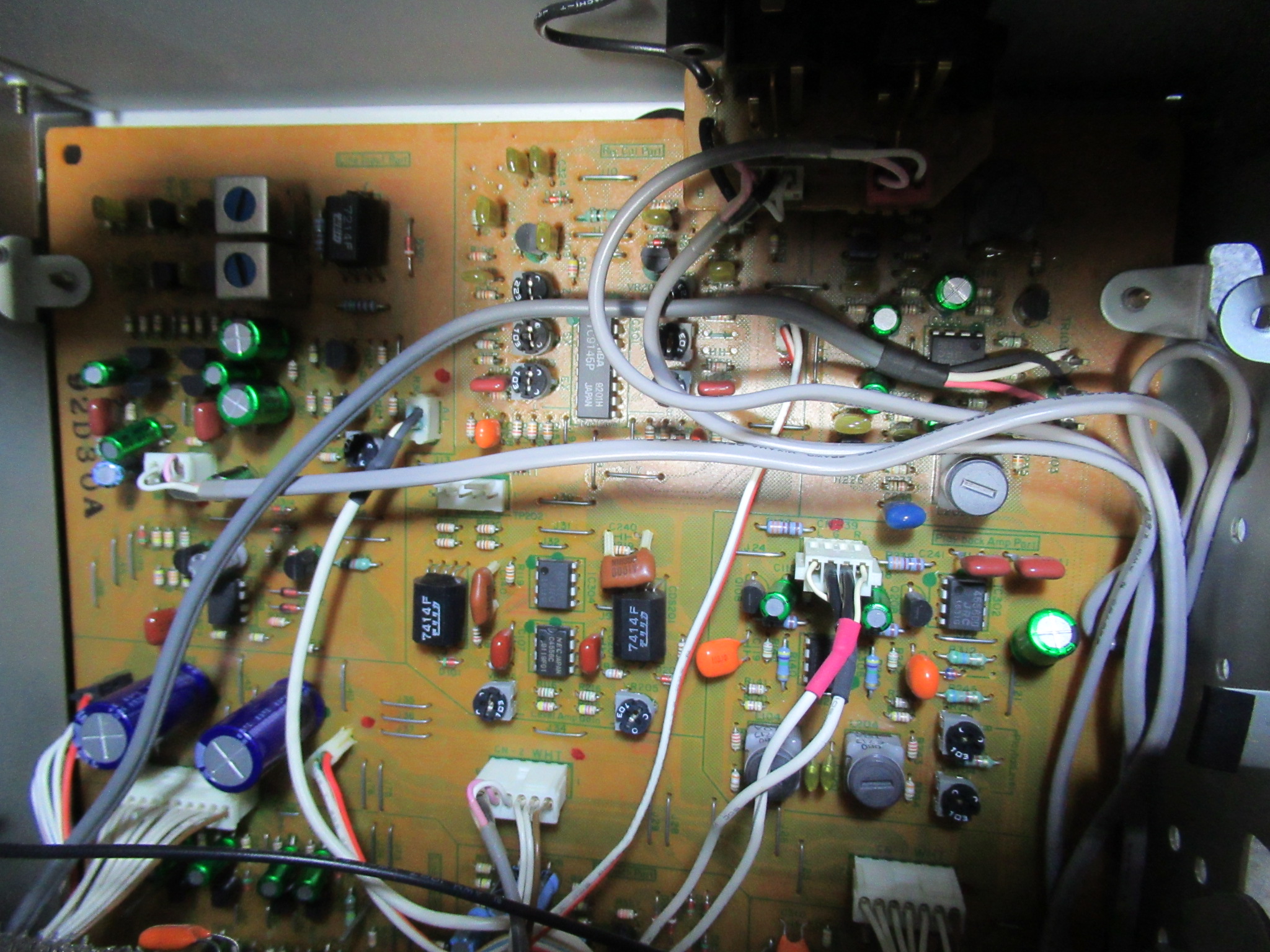 アジマス調整ツマミを回しましたが、メーターの動きがギクシャクします。調整VOLの接触不良が原因ですので、フロントパネルを分解し、調整VOLに接点復活剤を処置します。