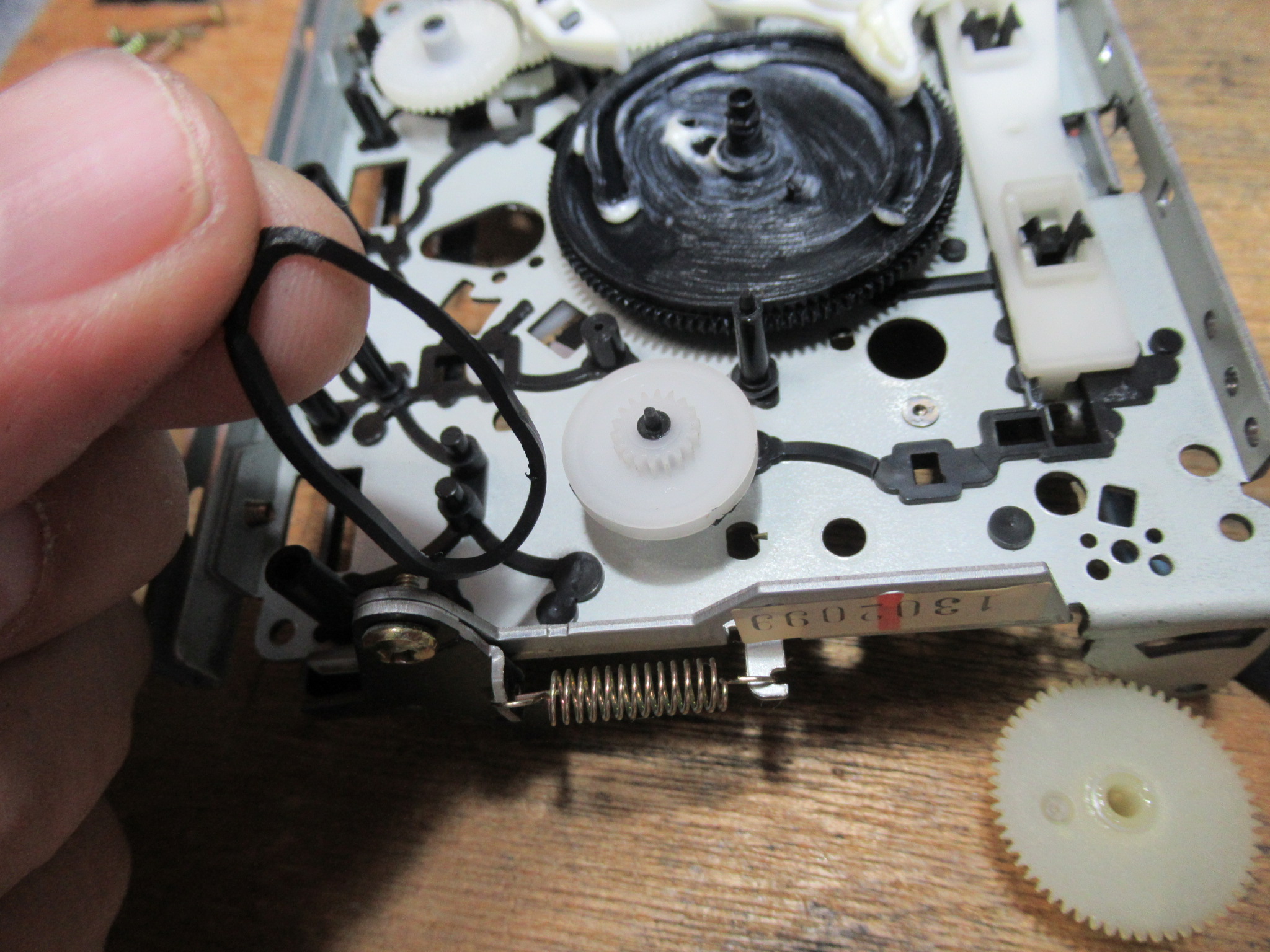 フロント部分を分解します。ベルトが加水分解て伸びています。