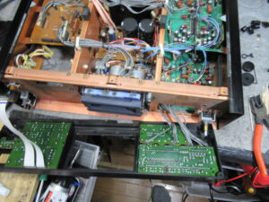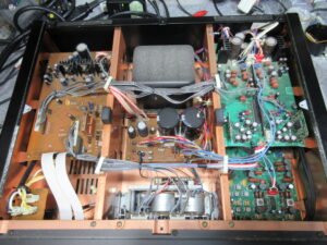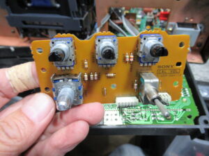 スイッチ基板を取り出して、接触不良になっているドルビー切替スイッチに接点復活剤を処置します。