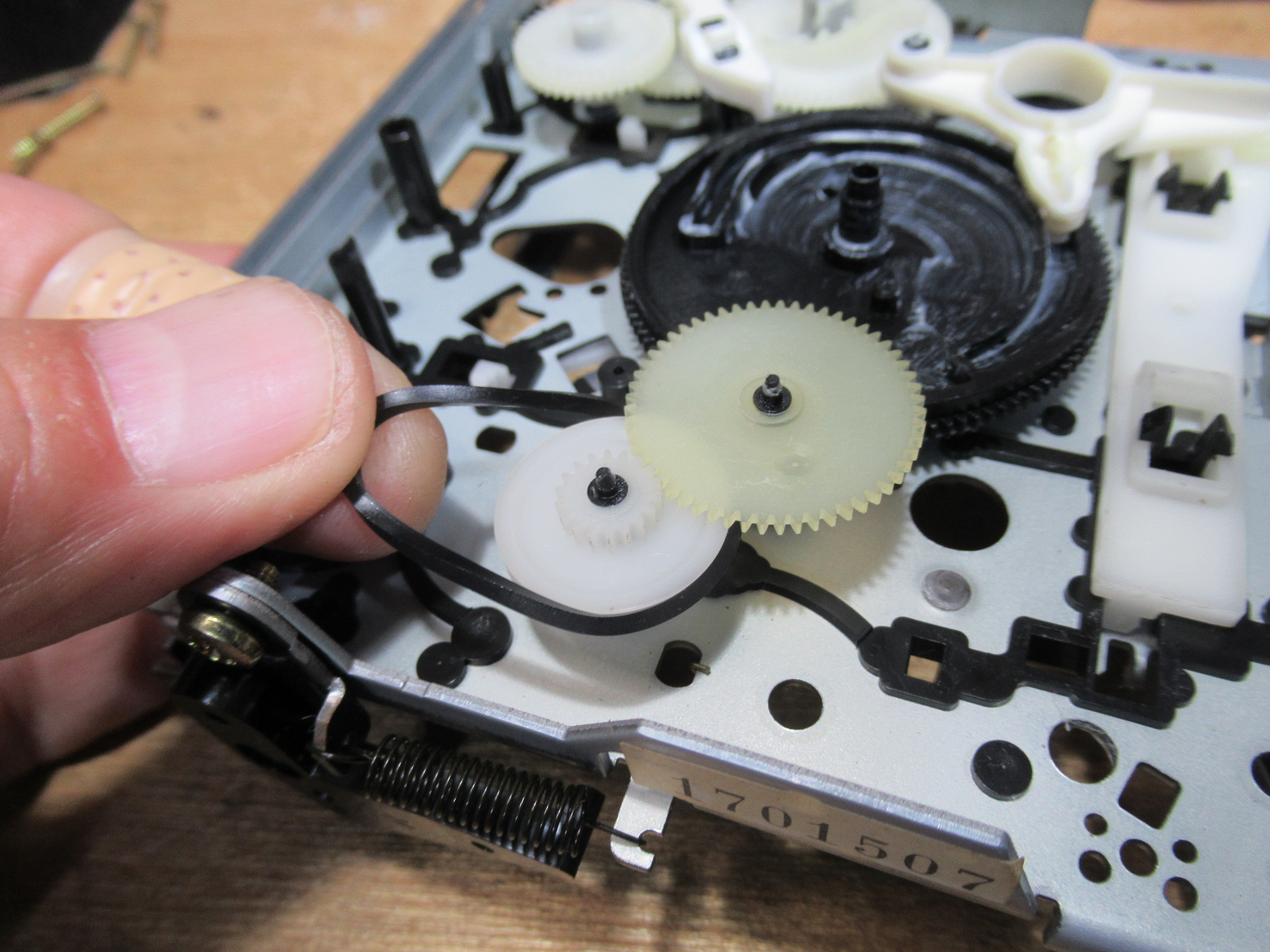 プーリーを脱脂して新しいベルトを仮掛けします。