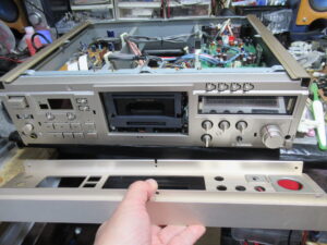 テープ走行が途中停止するということです。それ以外には、操作ボタンの誤作動、ドルビー表示のチラつきといった不具合を抱えているようです。