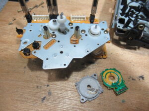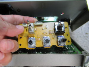 フロントパネルを取り外し、スイッチ基板を取り出してドルビー切替スイッチに接点復活剤を処置します。