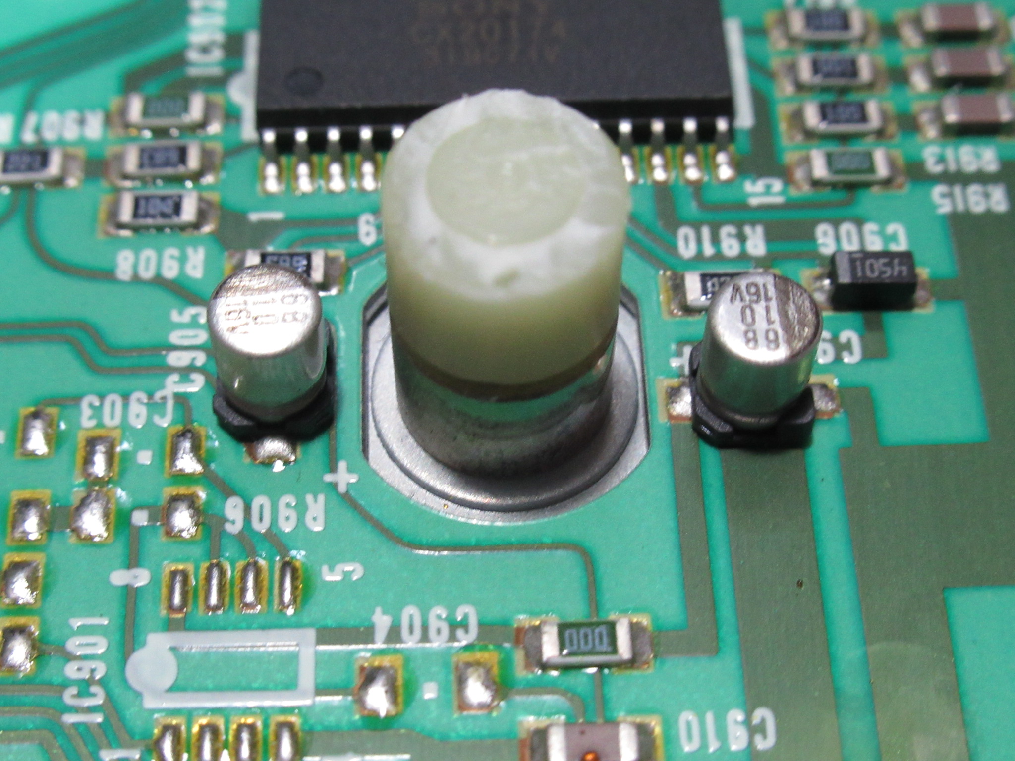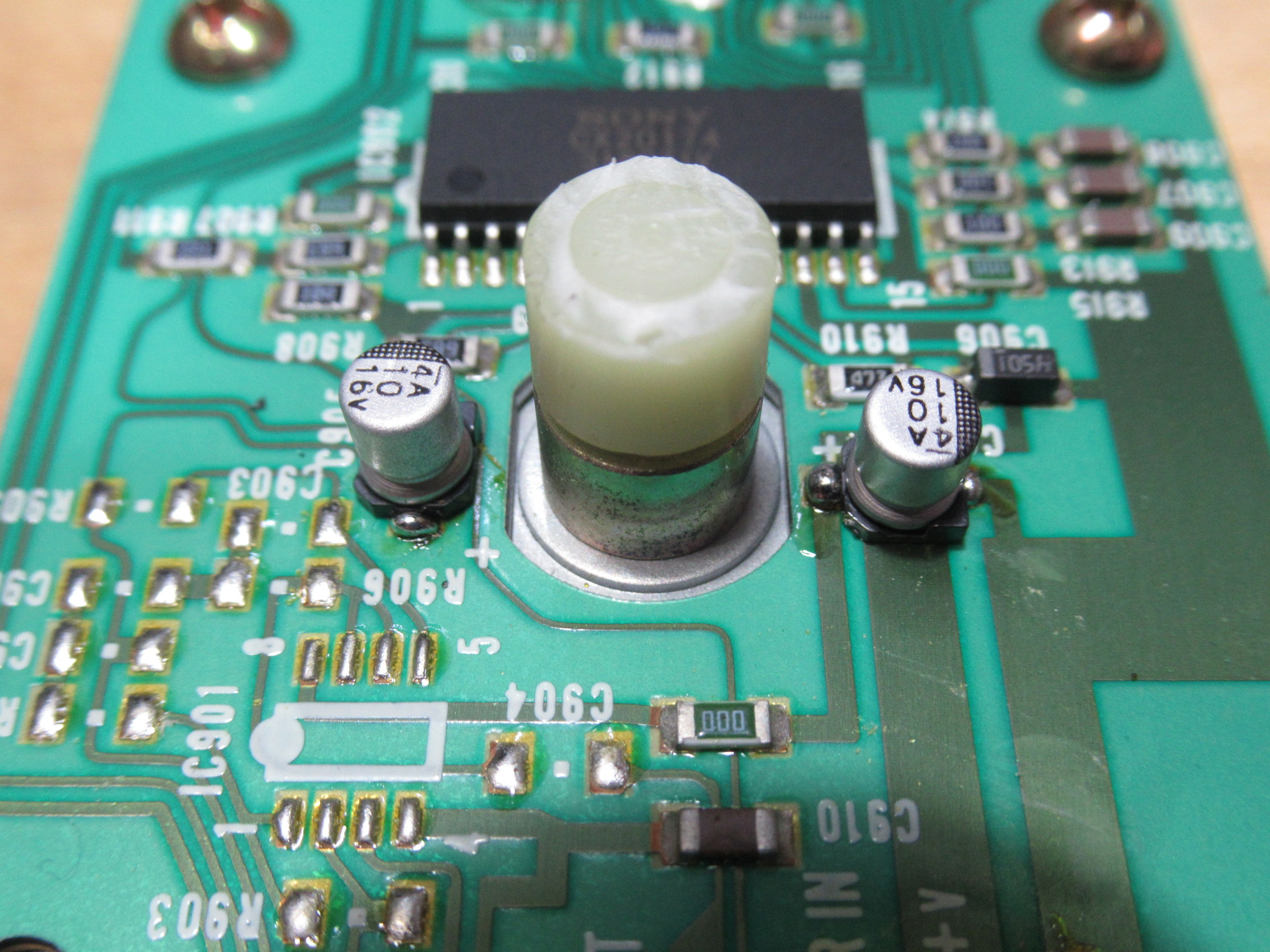 フロントパネルを取り外し、スイッチ基板を取り出してドルビー切替スイッチに接点復活剤を処置します。
