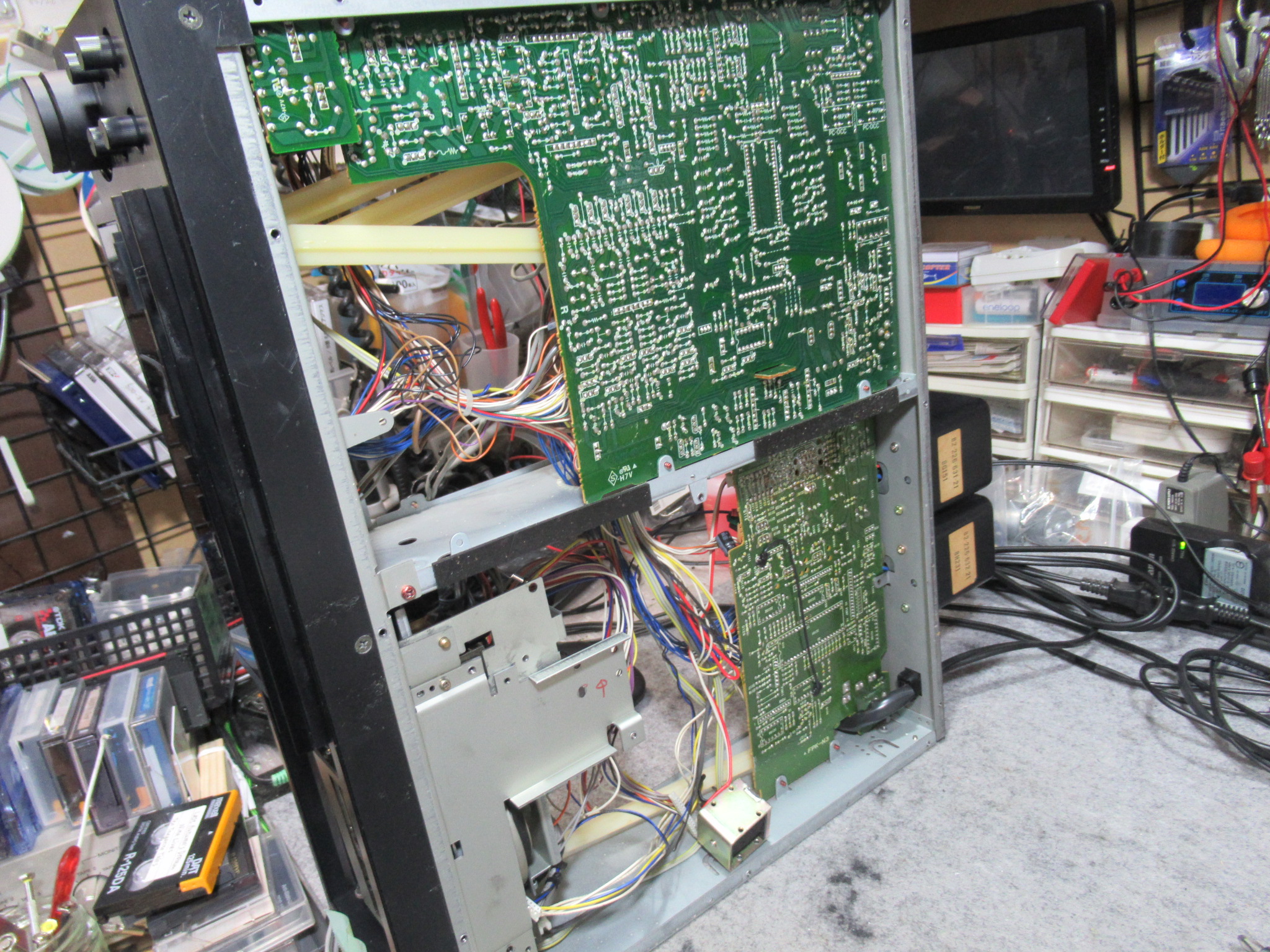 カバーを開けます。キャプスタンベルトが伸び気味です。
