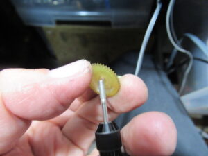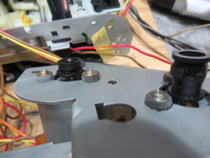 オーナー様に了解を得て、モーターを交換しましたが、残念ながら状況は変わりませんでした。ということは、キャプスタンと本体側とのクリアランスの問題でしょうか?つまり、金属が温まることによって膨張し、クリアランスが小さくなって抵抗が大きくなり、速度が低下するということです。そこで、再度メカを降ろして、キャプスタン部分に処置していたグリスを機械油に置換しました。