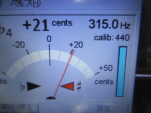 ひと安心したところで、新たな不具合が見つかりました。翌日電源を入れて最終チェックを行ったところ、速度が本来315Hzのところ、330Hz程度の値を示しました。写真は20分ほど経過したときのものですが、時間の経過により次第に速度が低下し、30分ほどで正常に戻ります。