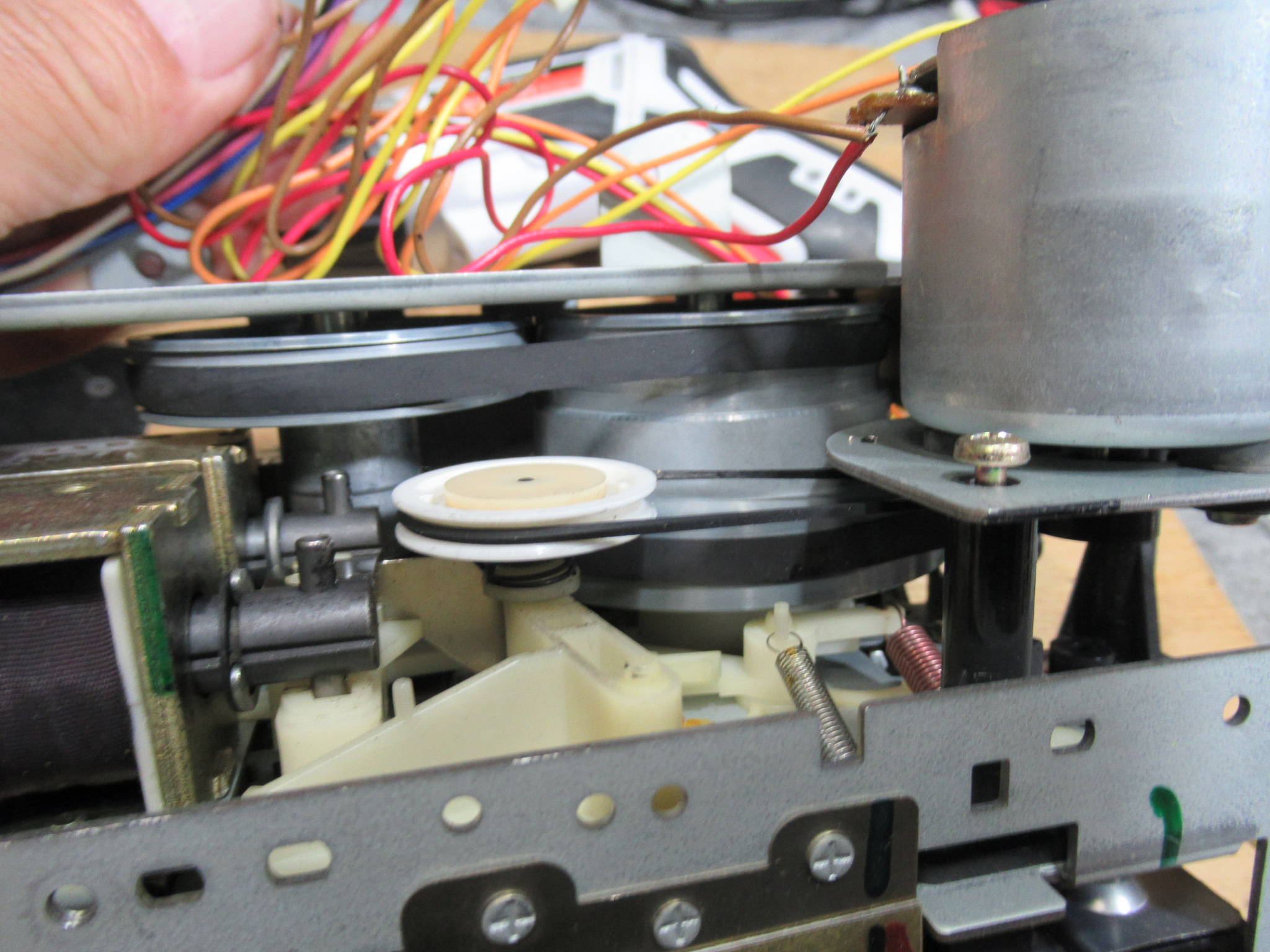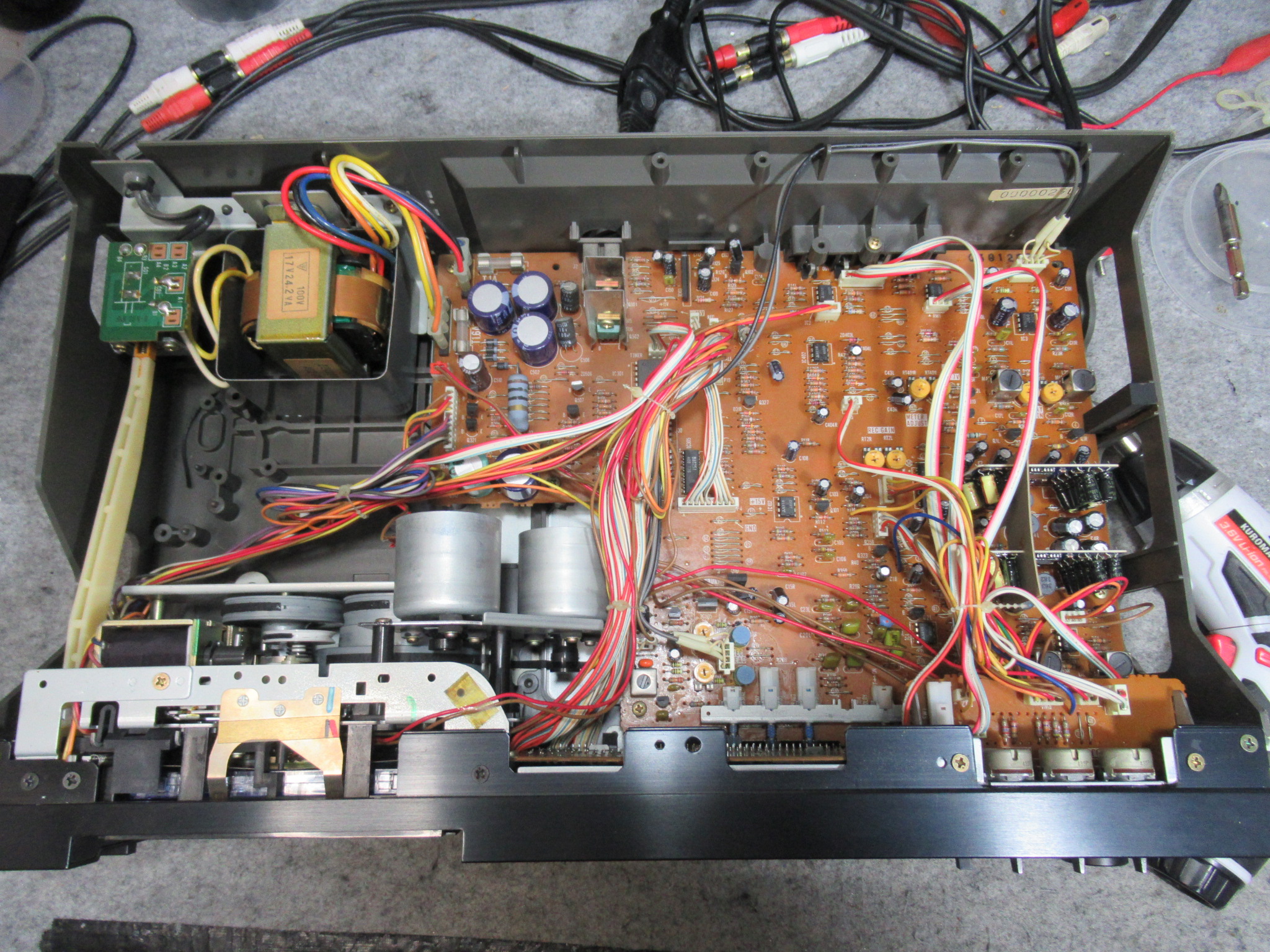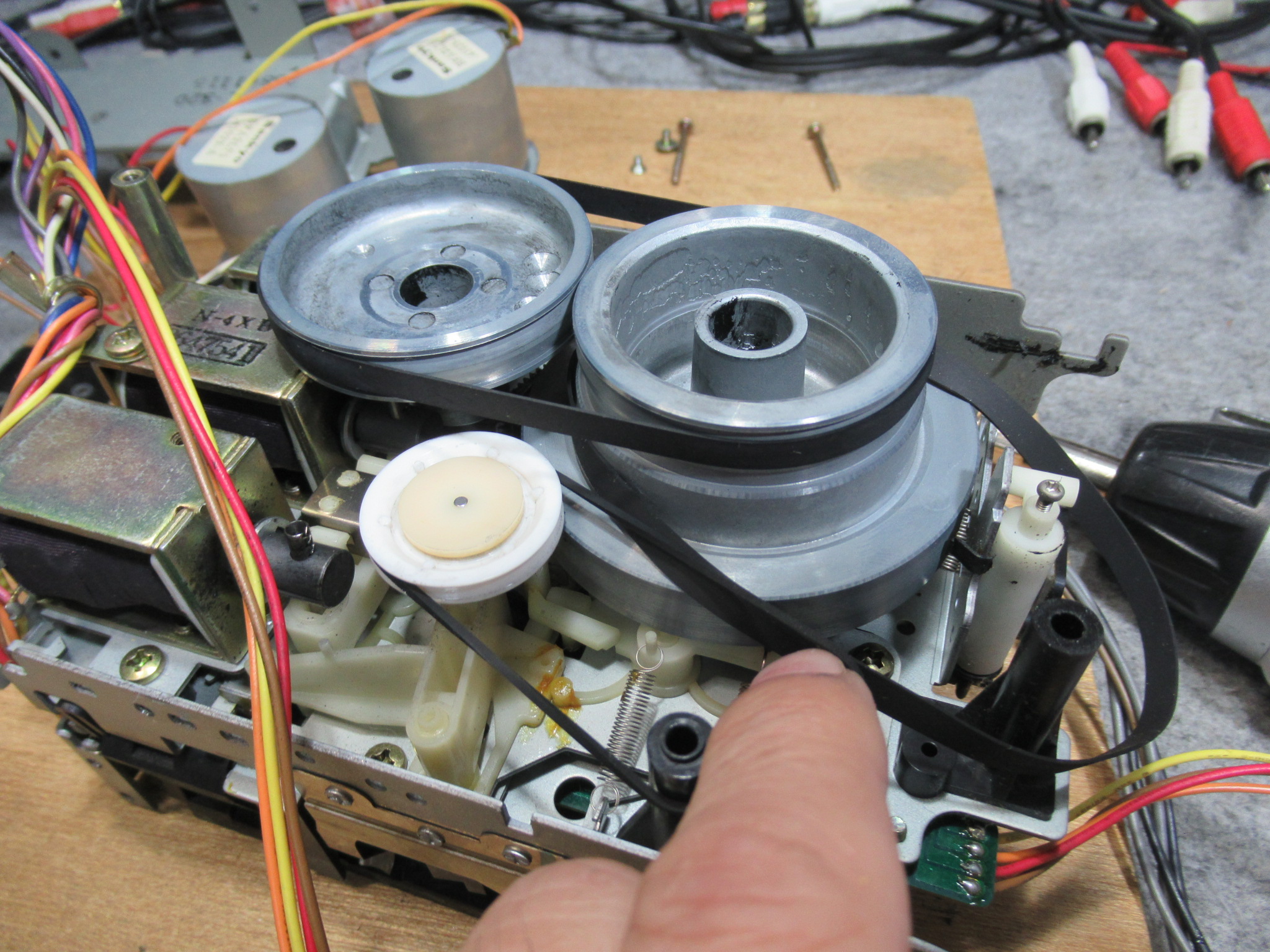 カバーを開けます。キャプスタンベルトもリールベルトも切れています。