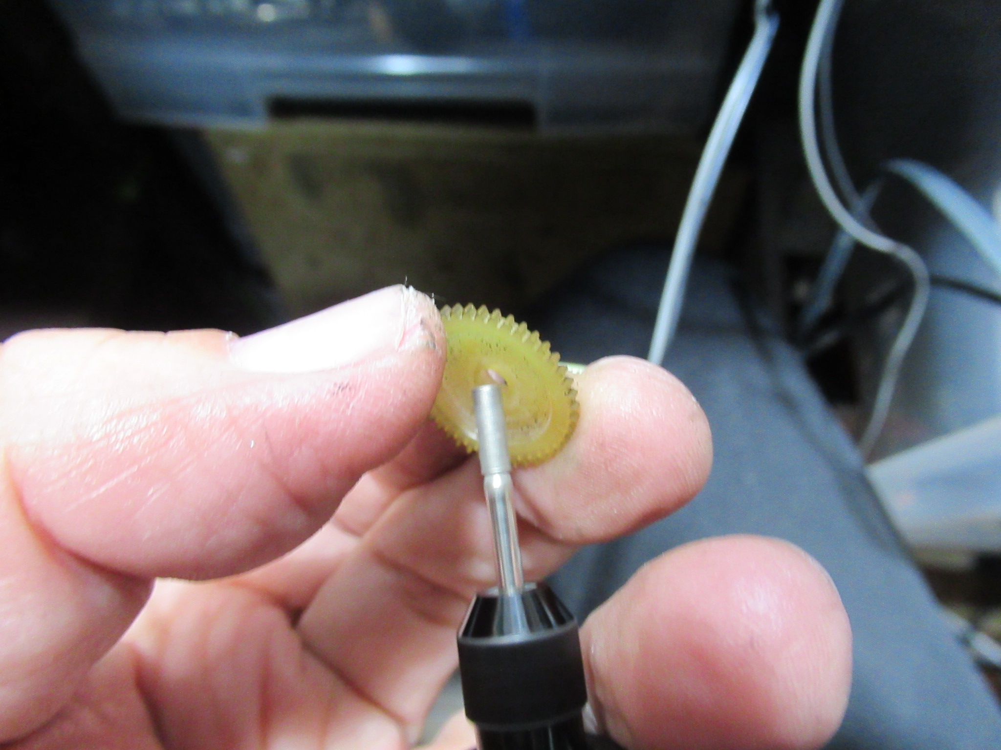 グリスの硬化ではなく、プラスチックの変形が原因ですので、シャフトに差し込む部分を削ります。