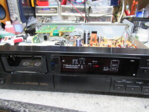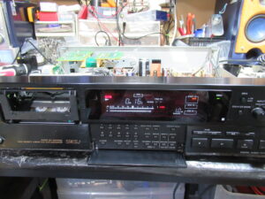 今日はSONYのDATデッキDTC-59ESの修理です。 突然、再生、早送り、巻き戻しなどができなくなったということです。ローディングは可能です。 テープを挿入し動作確認を行います。再生ボタンを押して …