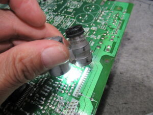 疑わしいのはRFアンプです。しかし、電解コンデンサーに液漏れ等の問題はありませんでした。デジタル回路の故障であれば修理はほぼ不可能ですが、何度か録音を試すうちに、時折正常に録音されることがあることがわかりました。ということは、接触不良でしょうか?