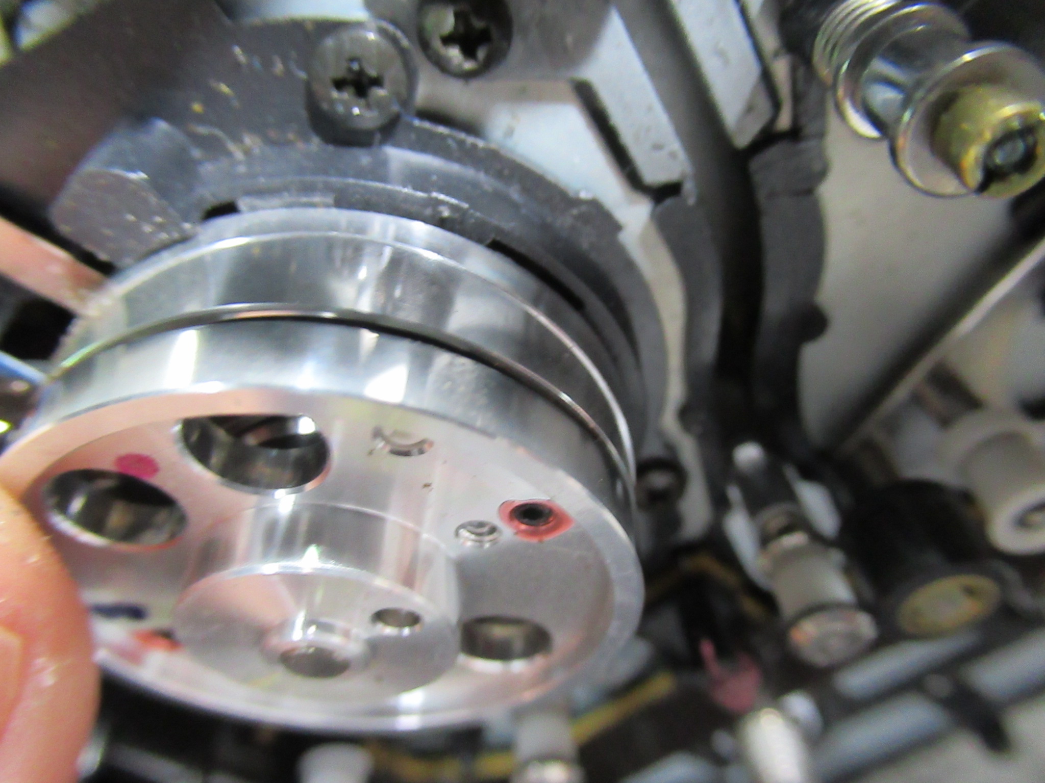 ドラム表面に僅かな浸食が見られます。ヘッドクリーナーのスポンジが長期間接触したことが原因です。このままではテープを痛めますので研磨します。