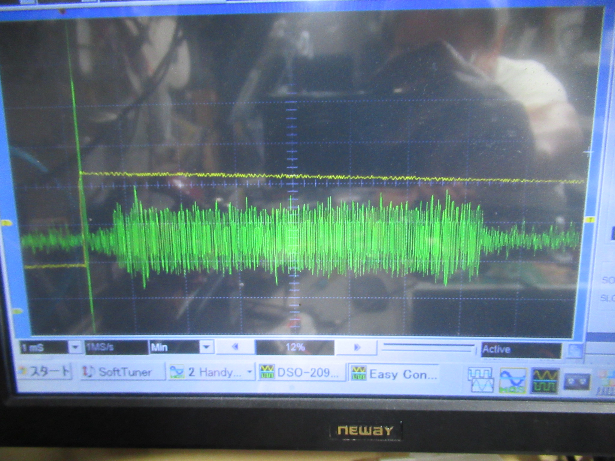 動作確認をします。しかし、LONGモードでは音飛びすることがあります。基板面を見ると、オシロスコープを接続した形跡がありましたので、過去に何らかの理由により調整が行われたことが原因と考えられます。