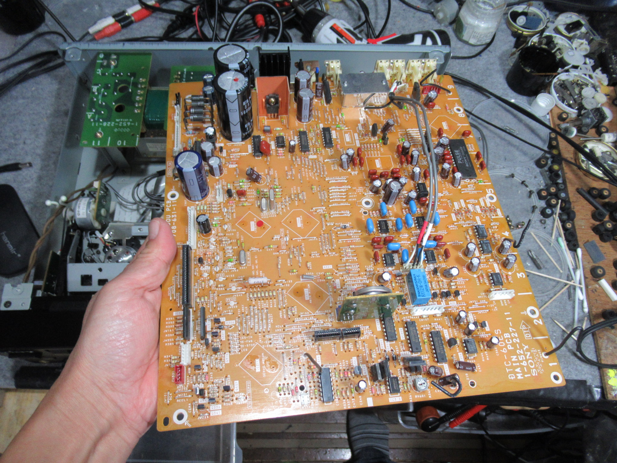 疑わしいのはRFアンプです。しかし、電解コンデンサーに液漏れ等の問題はありませんでした。デジタル回路の故障であれば修理はほぼ不可能ですが、何度か録音を試すうちに、時折正常に録音されることがあることがわかりました。ということは、接触不良でしょうか?