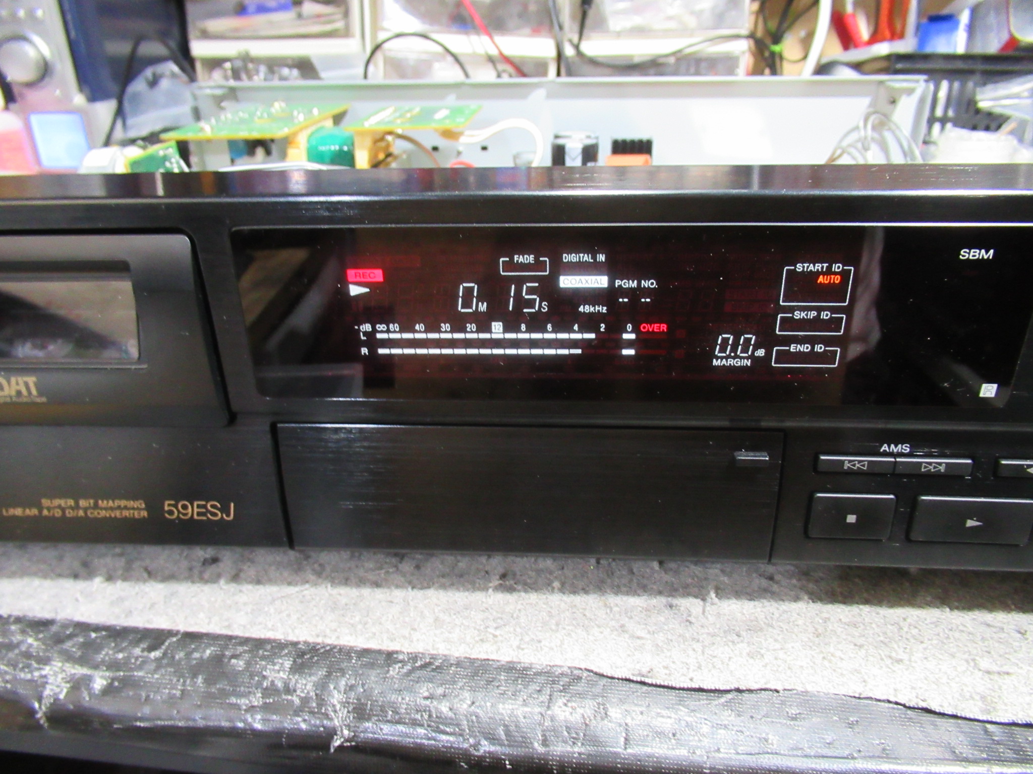 今日はSONYのDATデッキDTC-59ESの修理です。 突然、再生、早送り、巻き戻しなどができなくなったということです。ローディングは可能です。 テープを挿入し動作確認を行います。再生ボタンを押して …