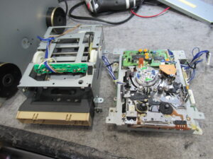 動作確認を行います。この機種は、テープをローディングした後は「カシャカシャ」という小気味よい動作音が鳴りますが、それがなく、何となく様子が変です。