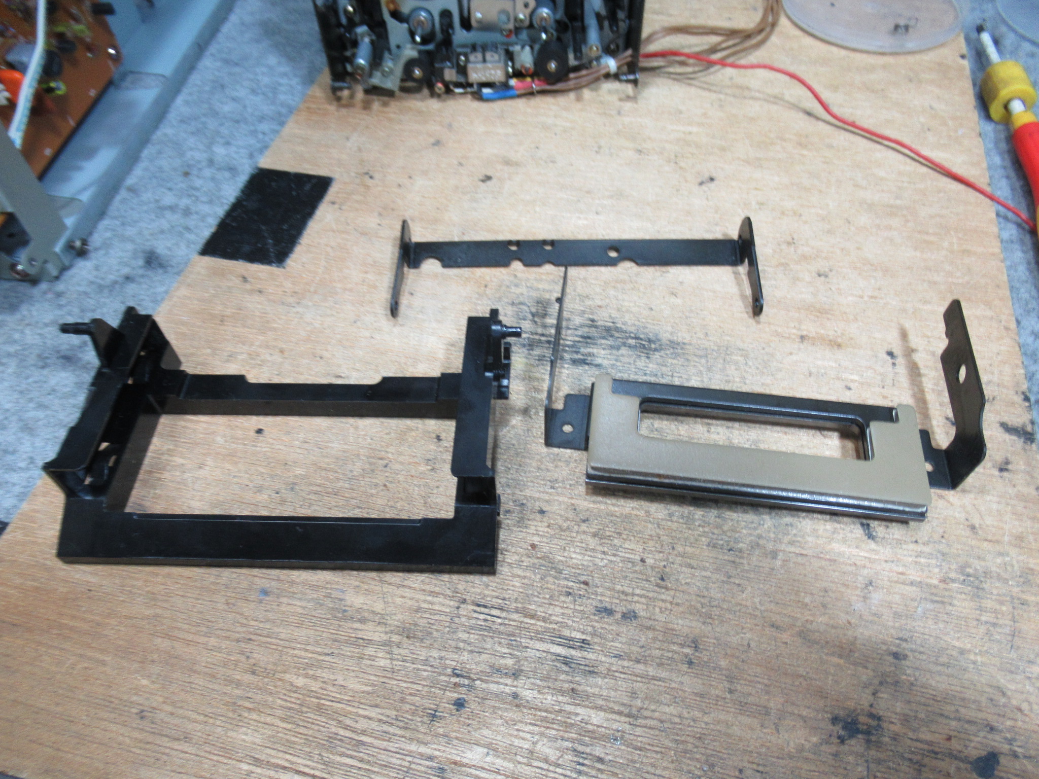 カバー、底板、フロントパネルを外してメカを取り出します。手を加えられた形跡がありますので、やや不安です。