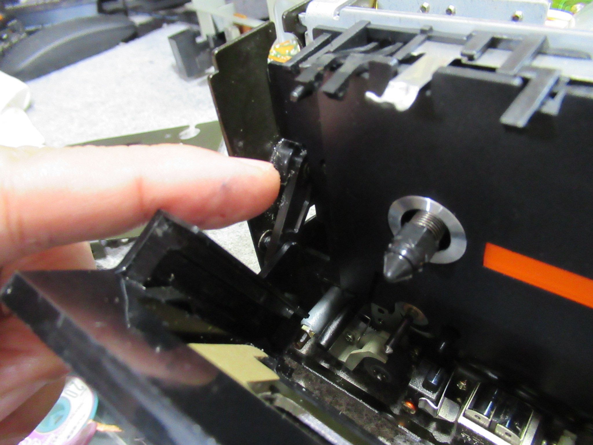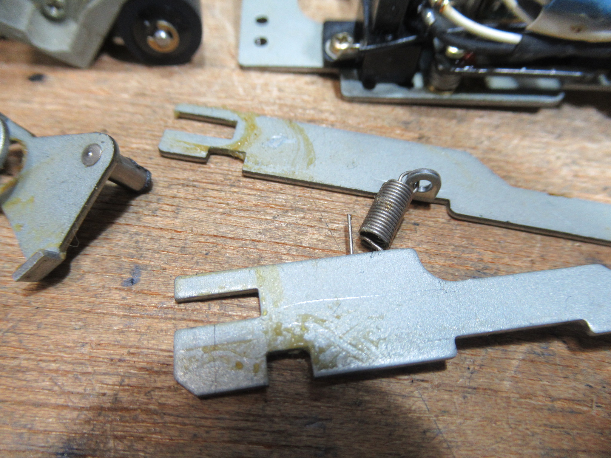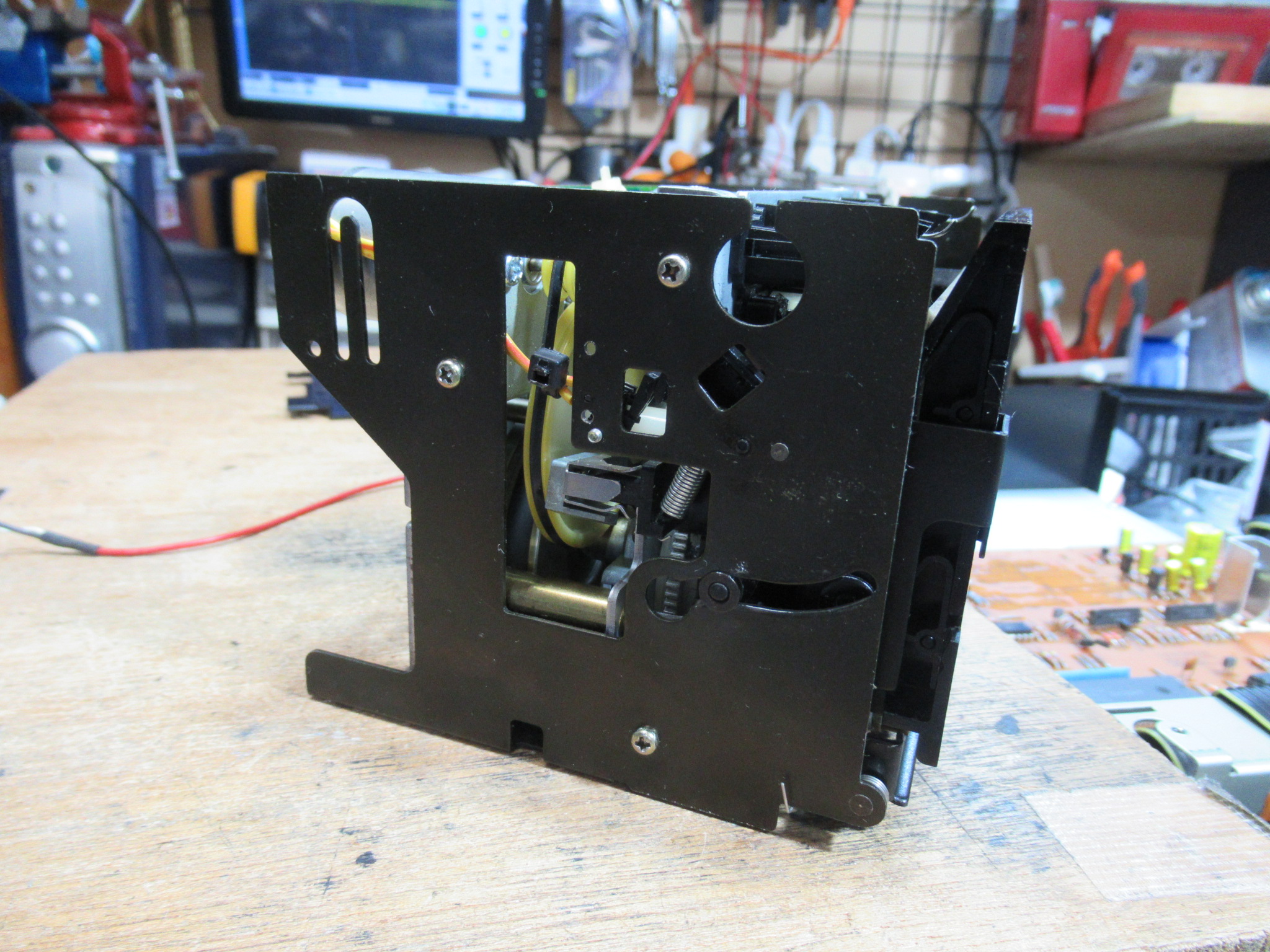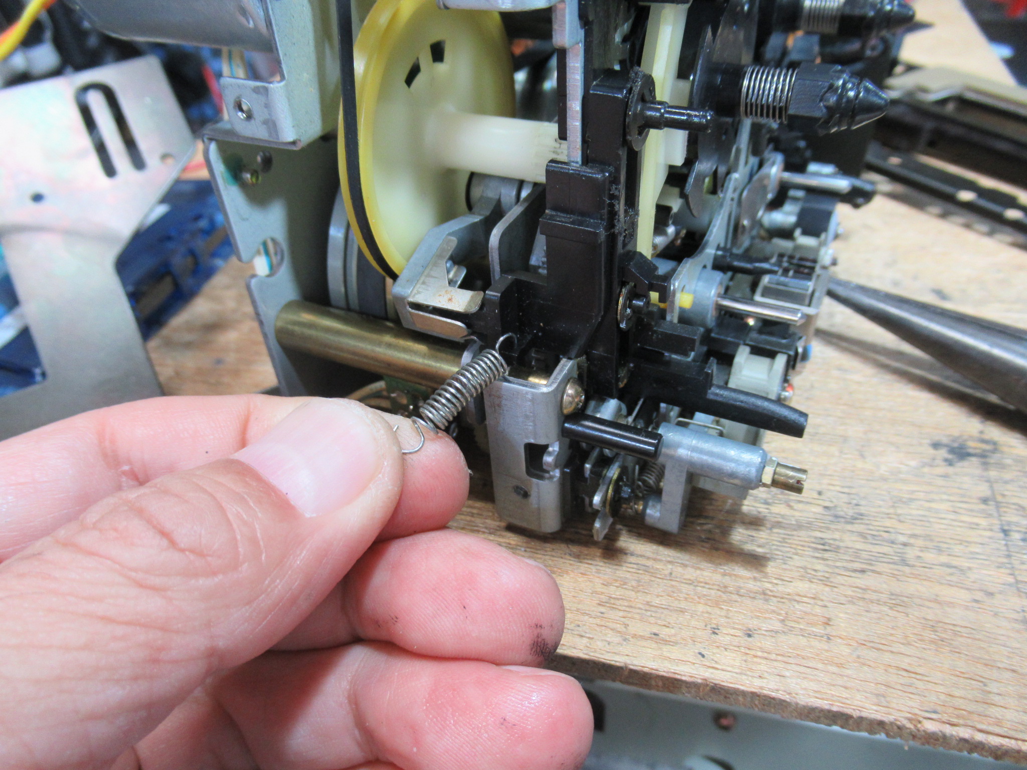 再度メカを取り出して、目視で動作状況や各部を点検します。トレイを開けるバネの力が弱く感じます。