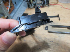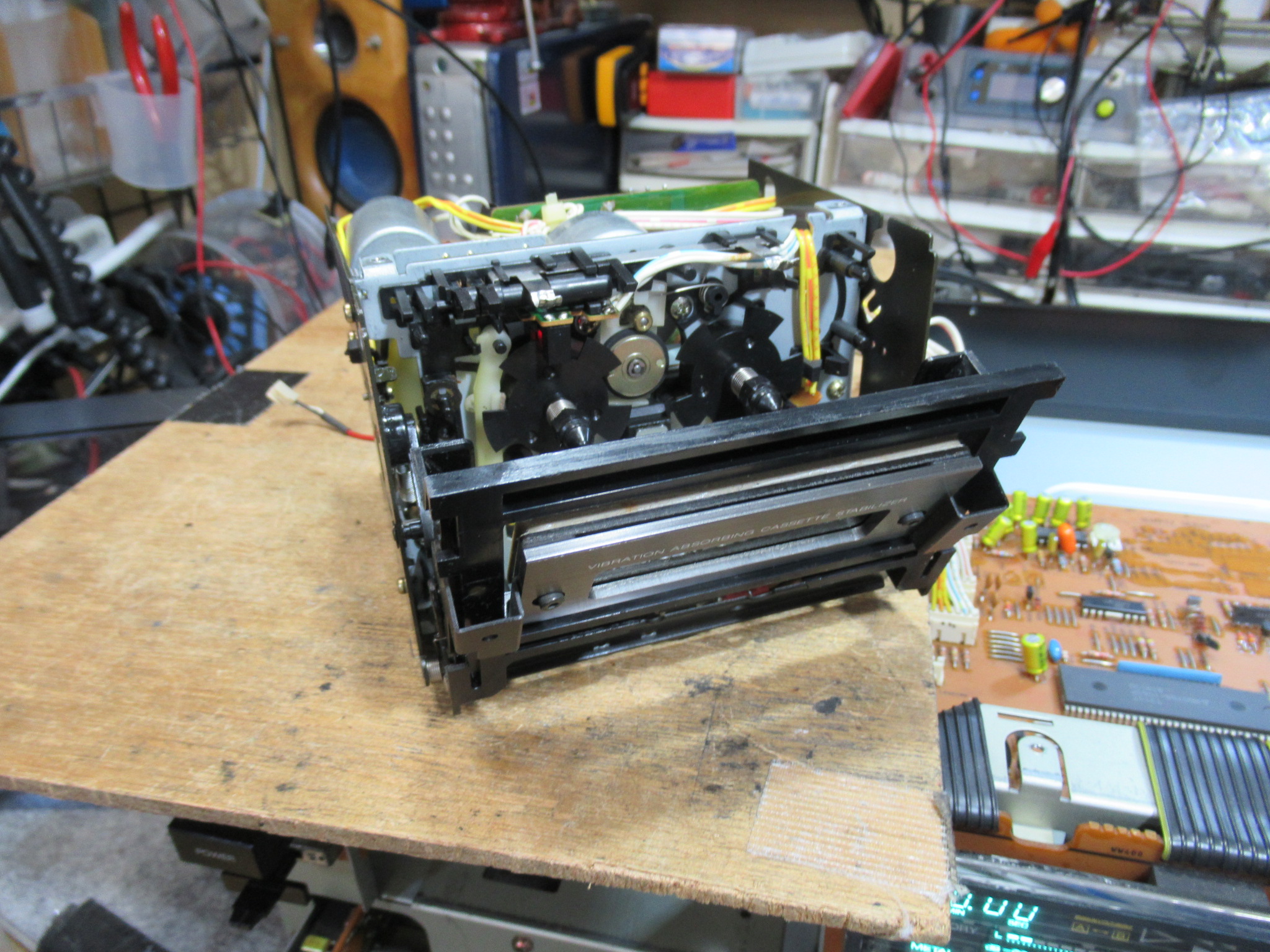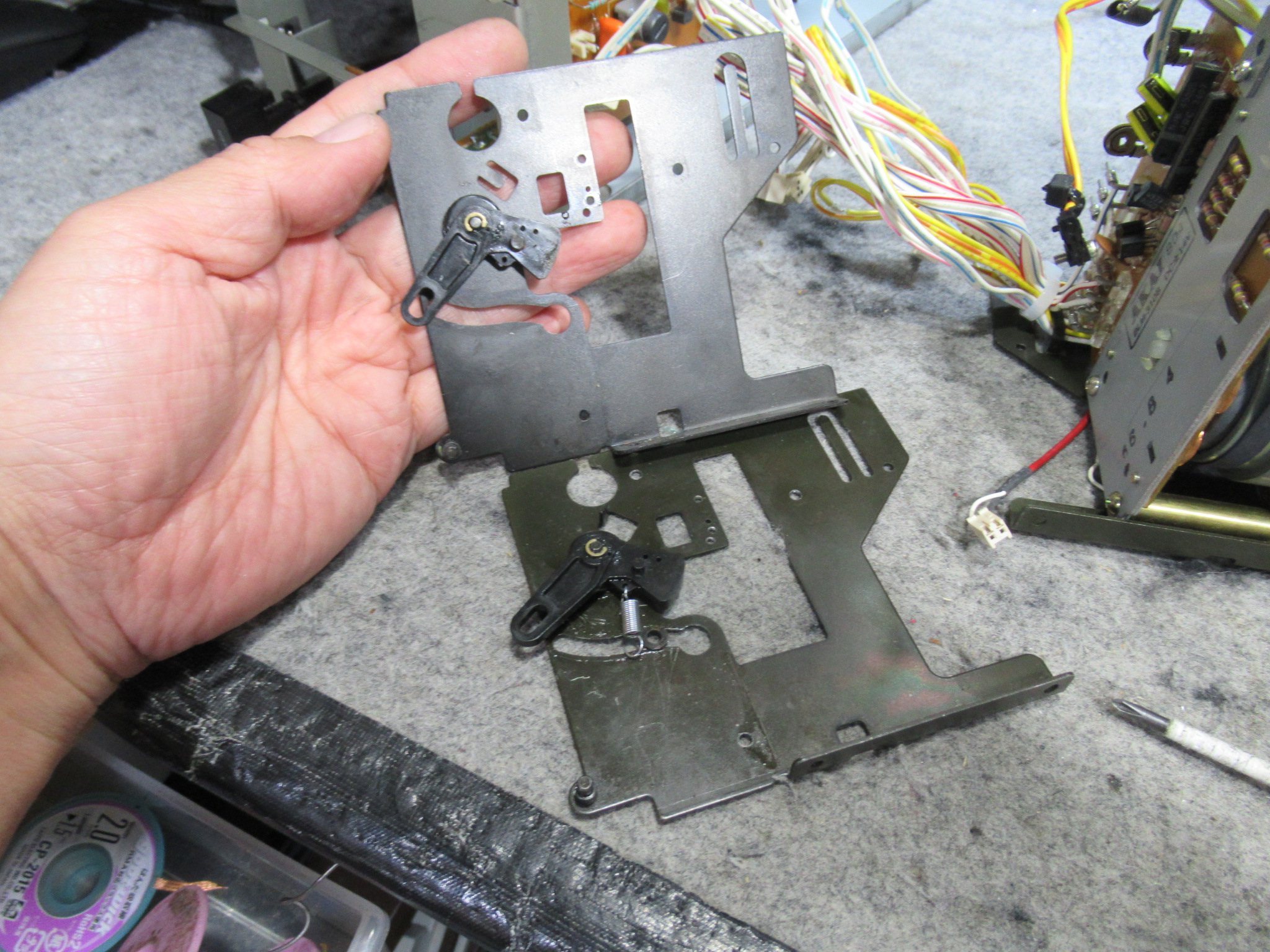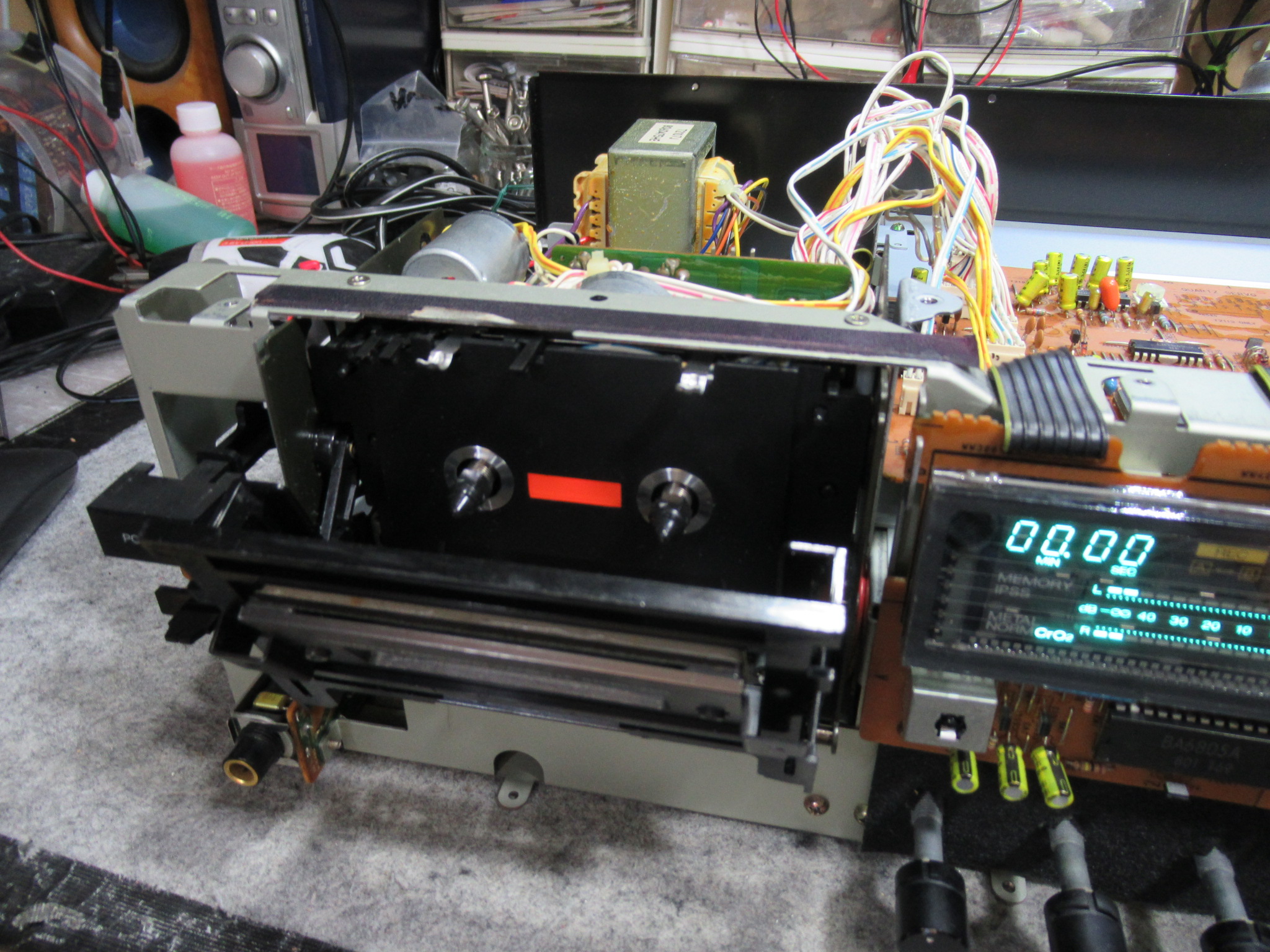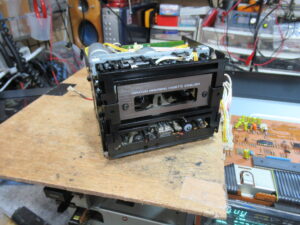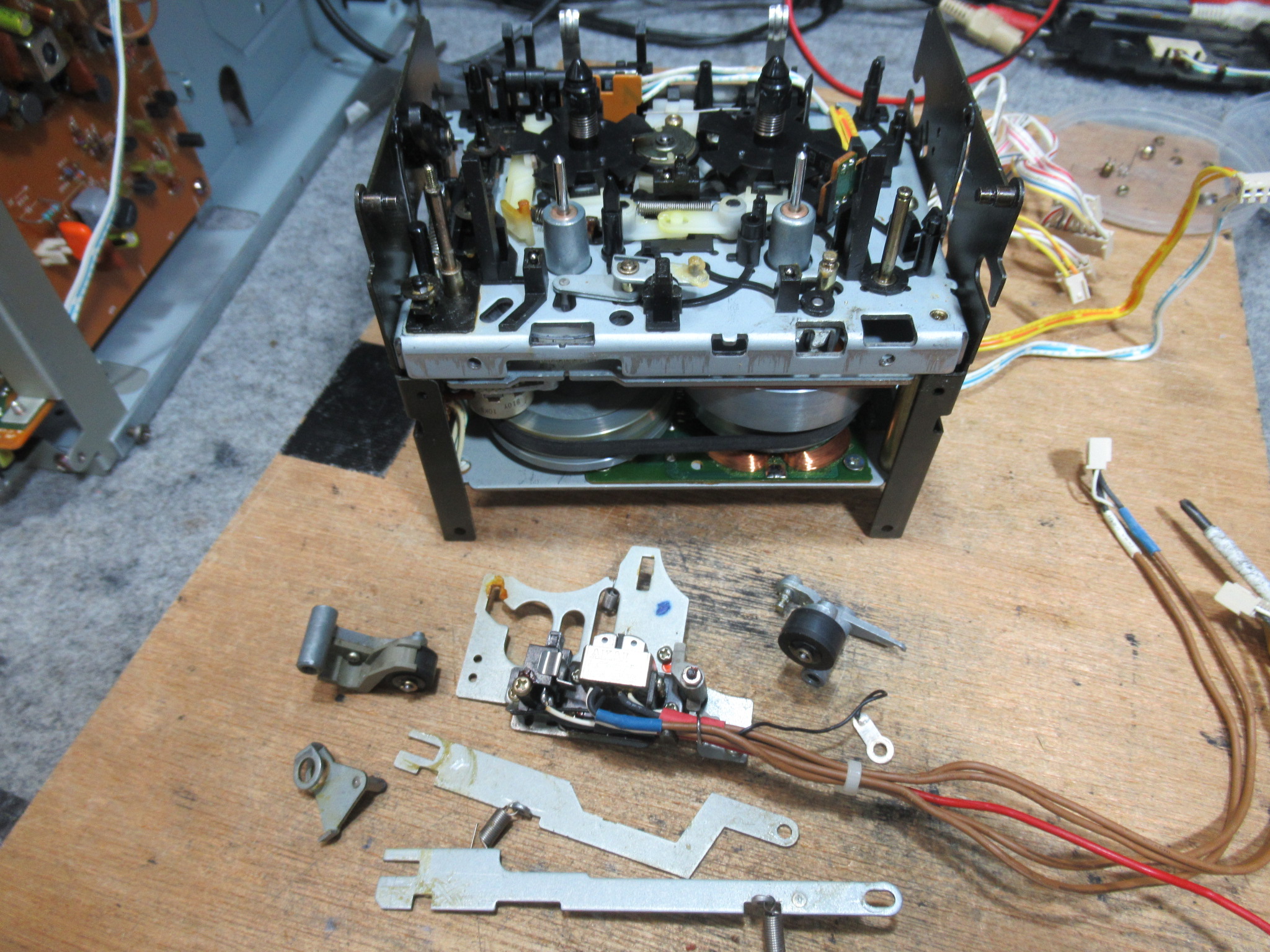 再度メカを取り出して、目視で動作状況や各部を点検します。トレイを開けるバネの力が弱く感じます。