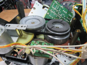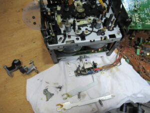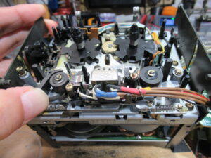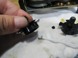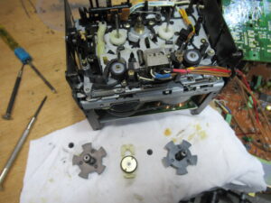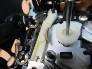右側のピンチローラーアームを取り外した状況です。グリスが乾いて白くなっています。
