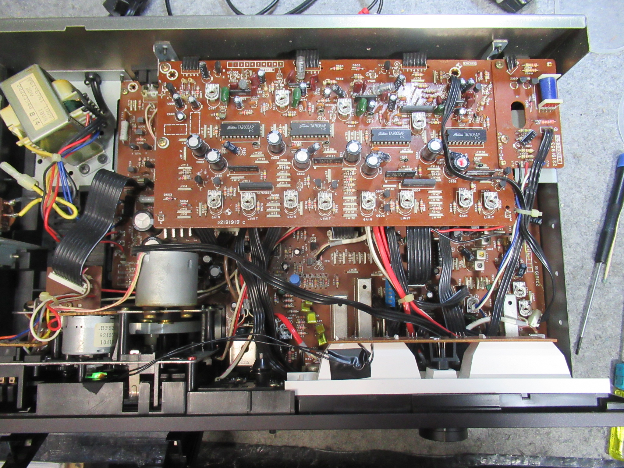 今回は、メーターランプとカウンターの修理に併せ、全体的なOHのご依頼もありましたが、数年前にOHされたということですので、ピンチローラーやキャプスタンベルトは健常です。